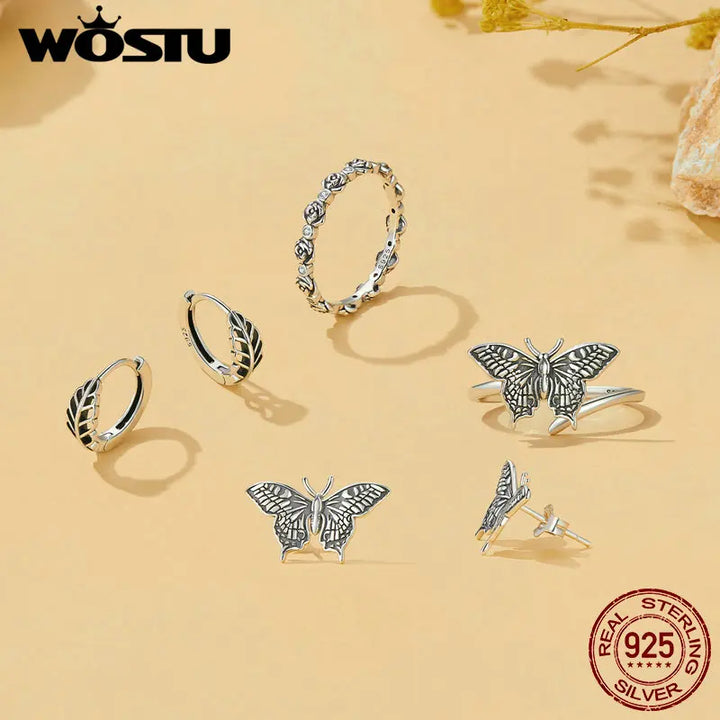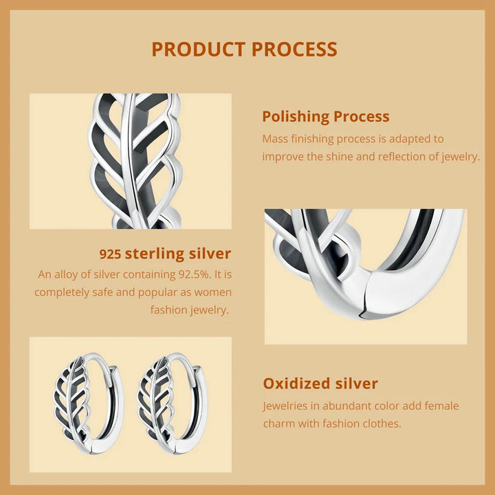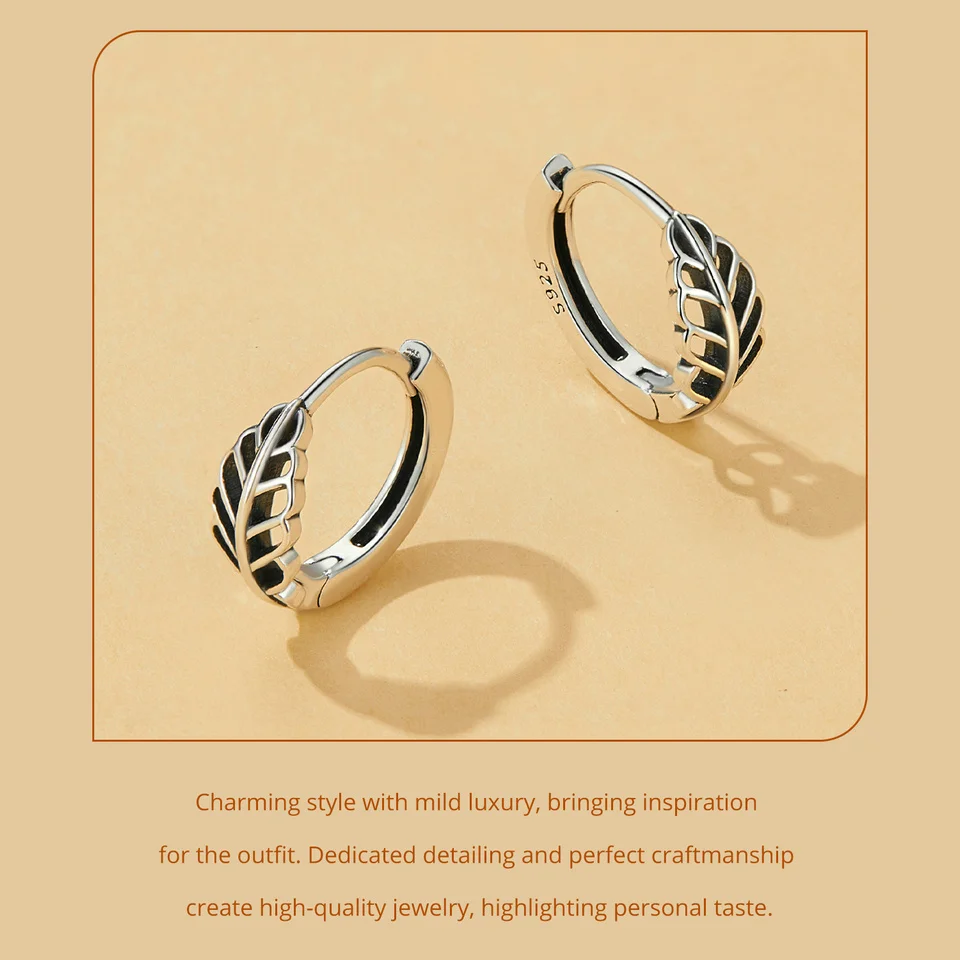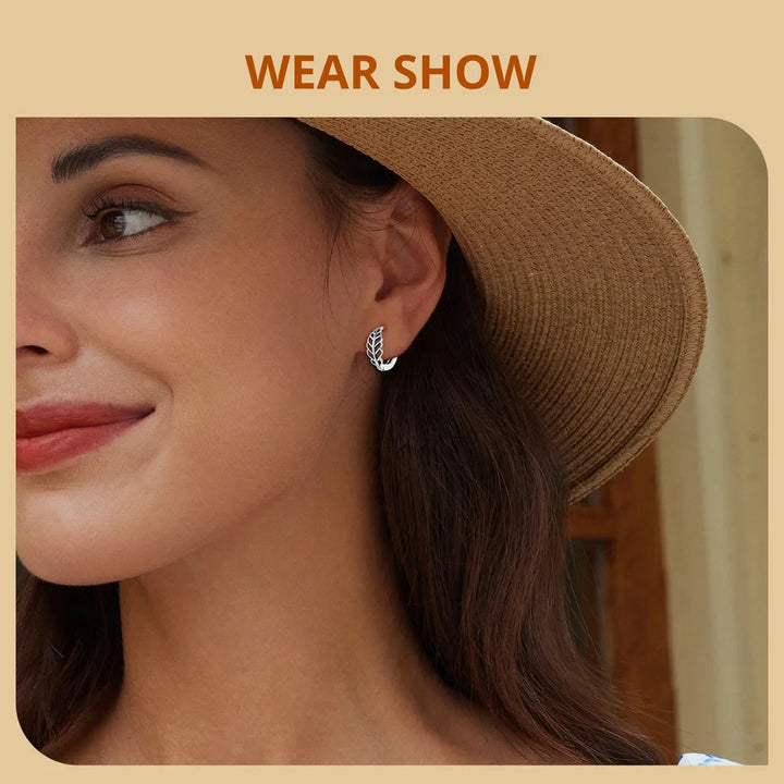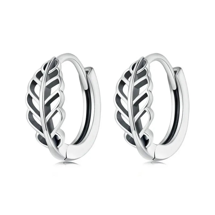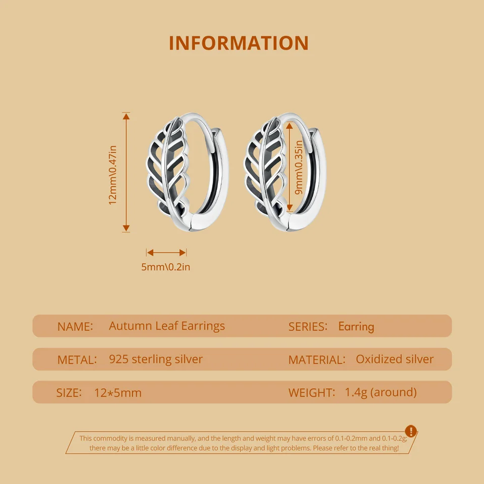 WOSTU Simple Hollow Out Leaf Earrings For Women Real 925 Sterling Silver European Hoop Earrings Girl Party Jewelry Gift