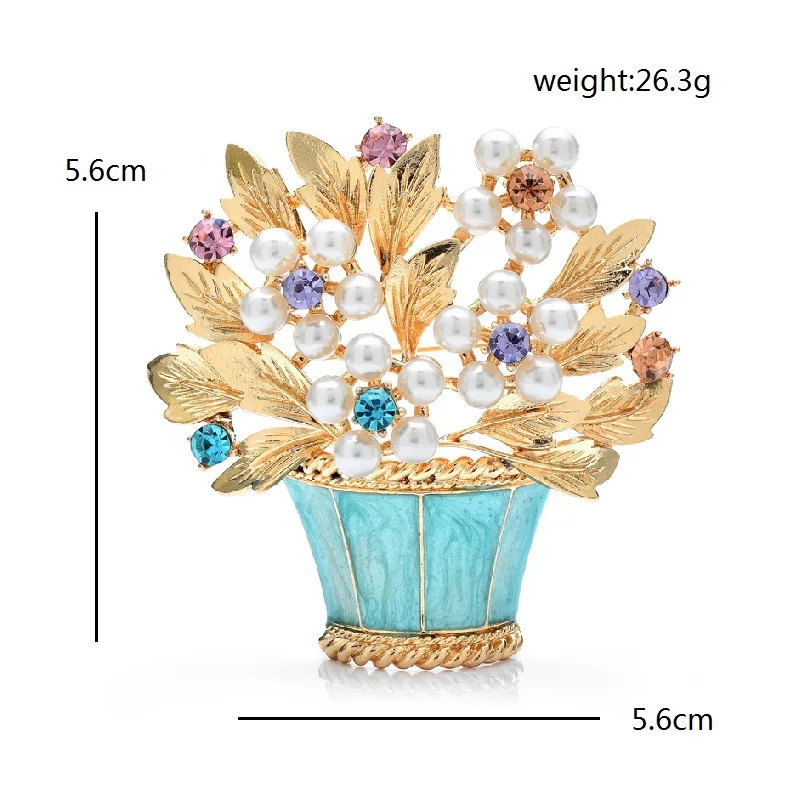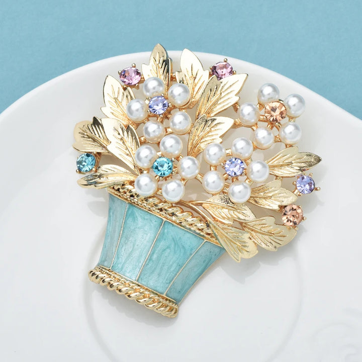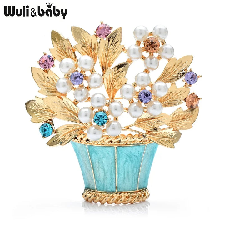 Wuli&baby Luxury Pearl Pot Flowers Brooches For Women Unisex Charming Beautiful Flower Party Office Brooch Pins Gifts