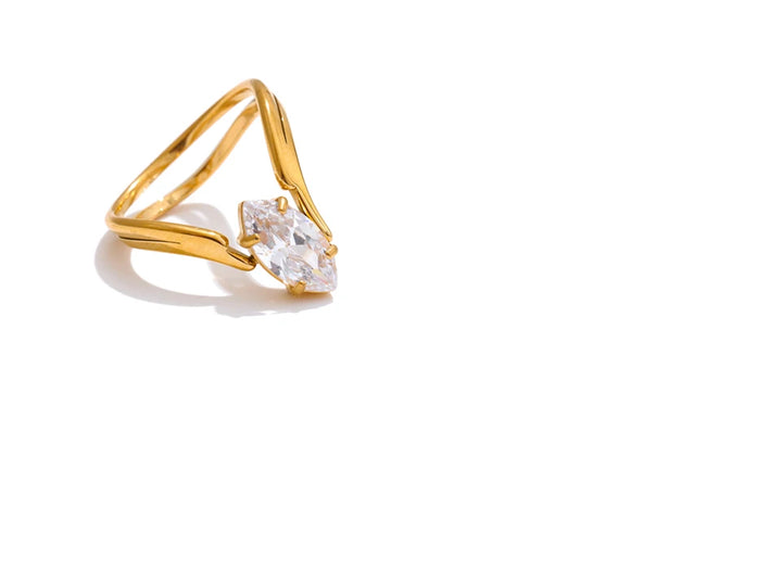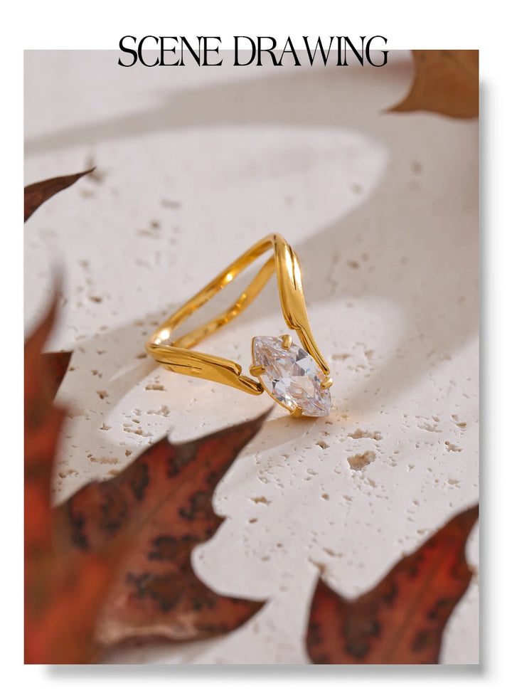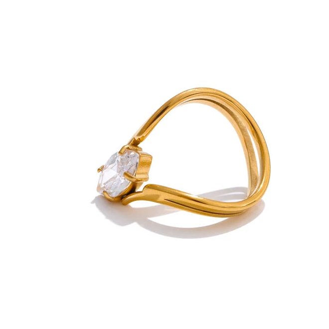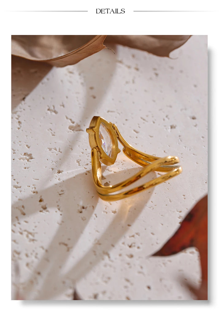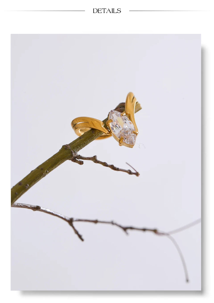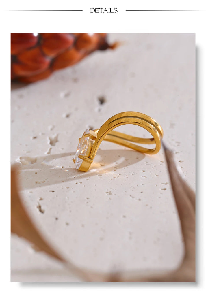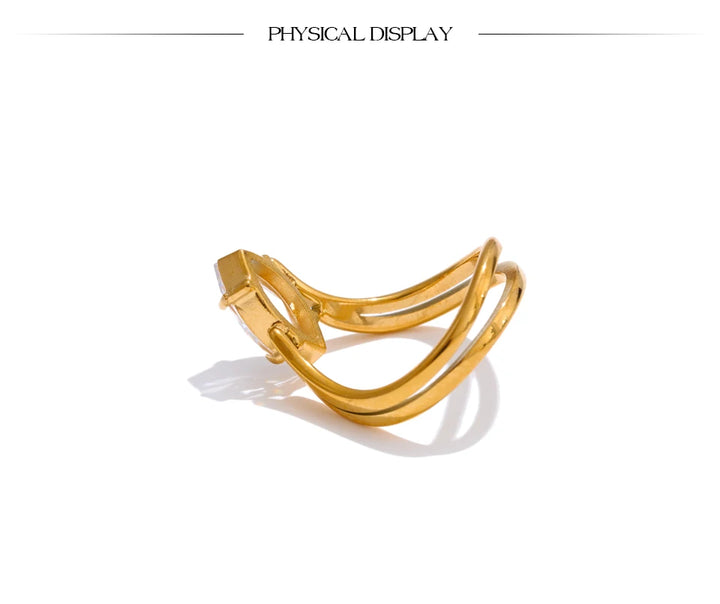 Yhpup 2025 Arrivals Stainless Steel Zirconia Delicate Ring 18K Golden Plated Hypoallergenic Exquisite Fashion Jewelry