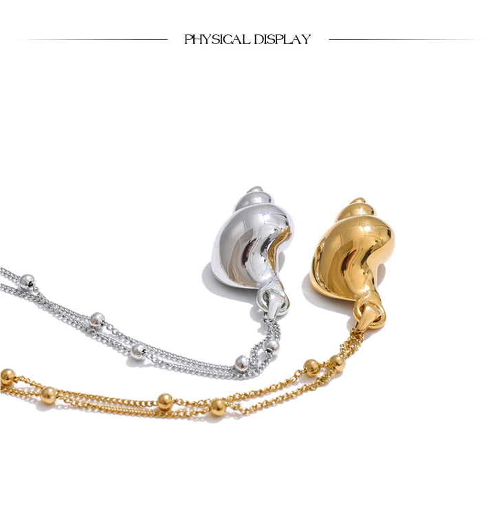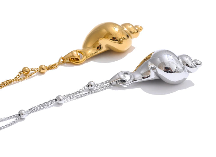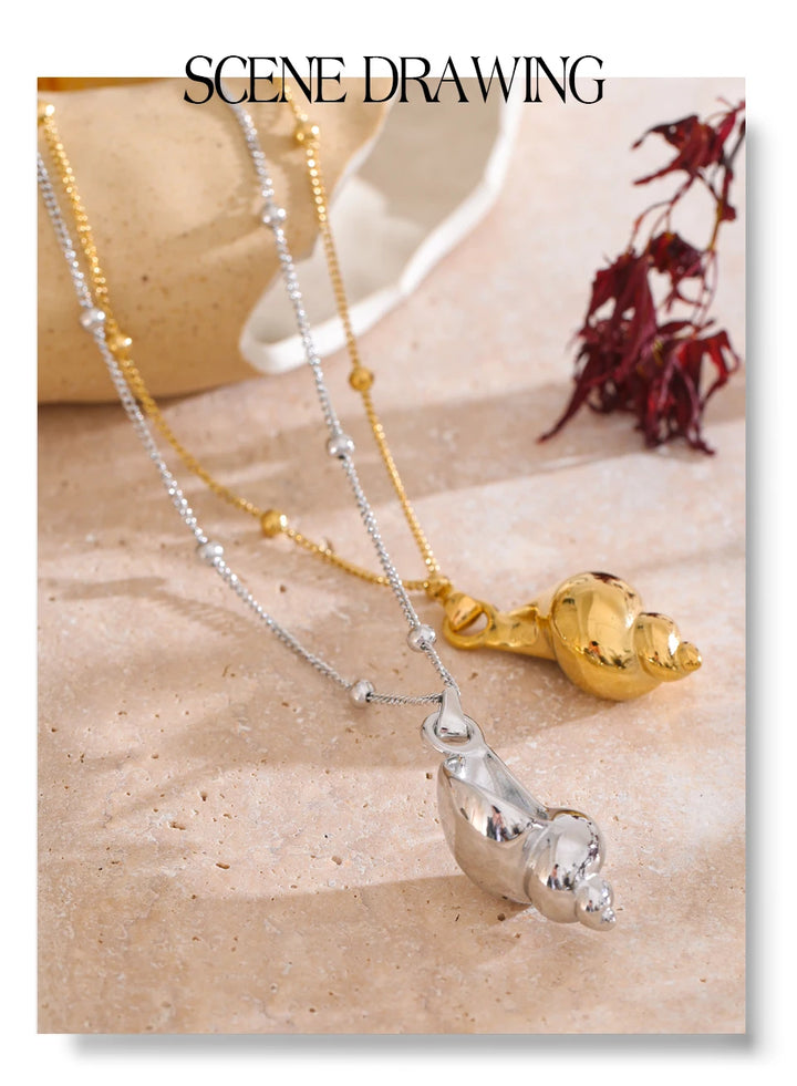 Yhpup 2025 Summer Ocean Style Metal Conch Pendant Necklace Distinctive Stainless Steel Holiday Fashion Jewellery New
