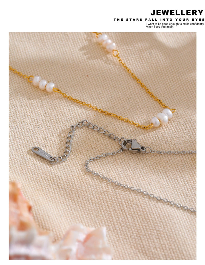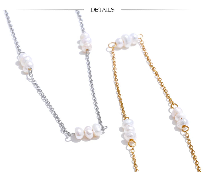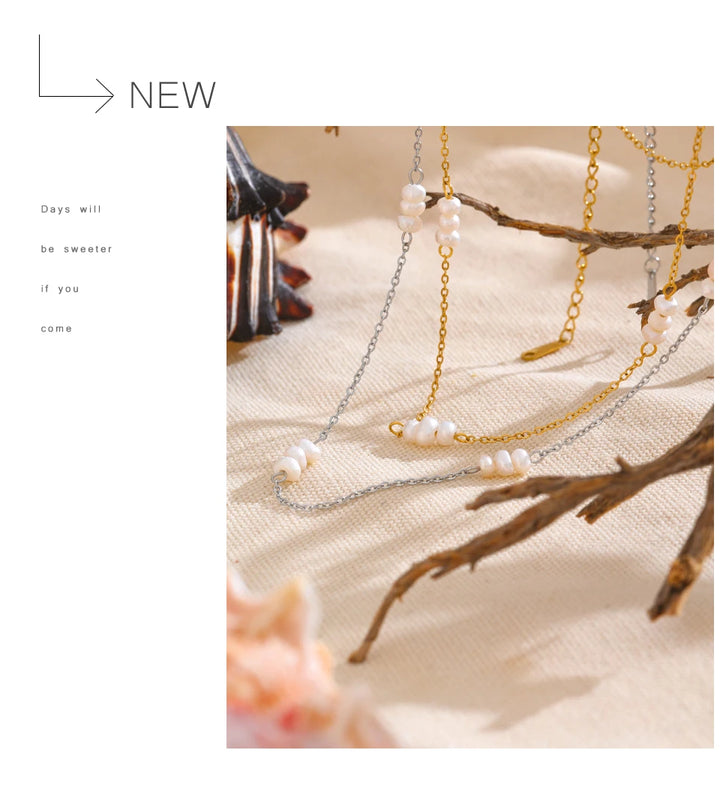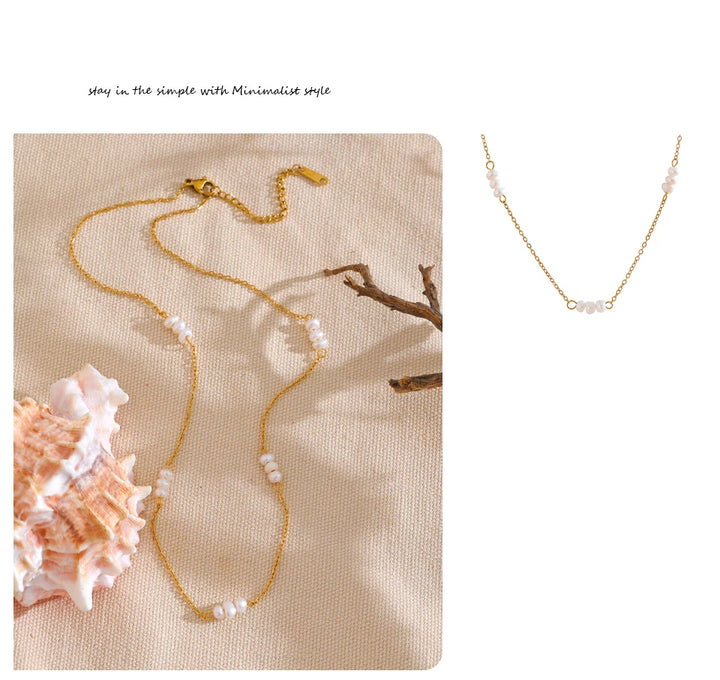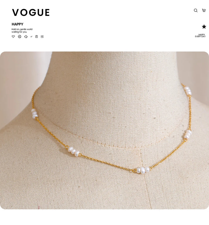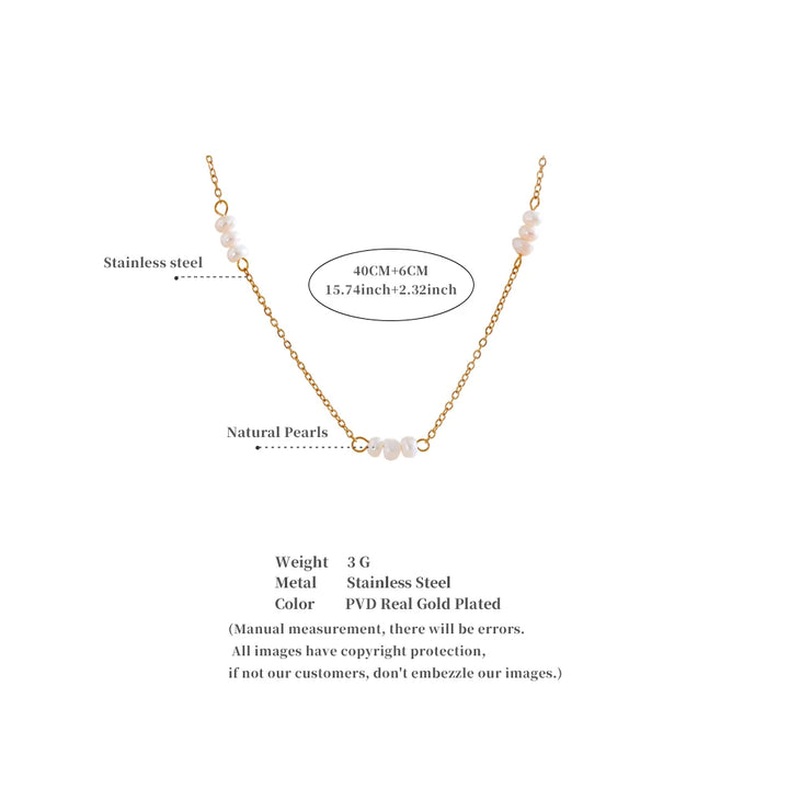 Yhpup 40+6CM Natural Freshwater Pearls Chain Collar Necklace 18k Gold Color Plated Trendy Fashion Daily Jewelry Accessories