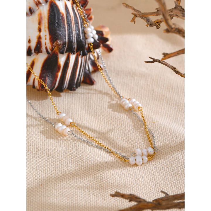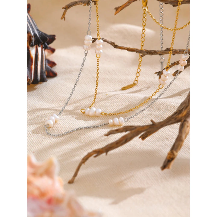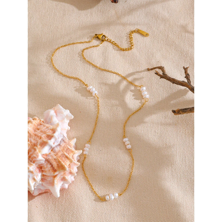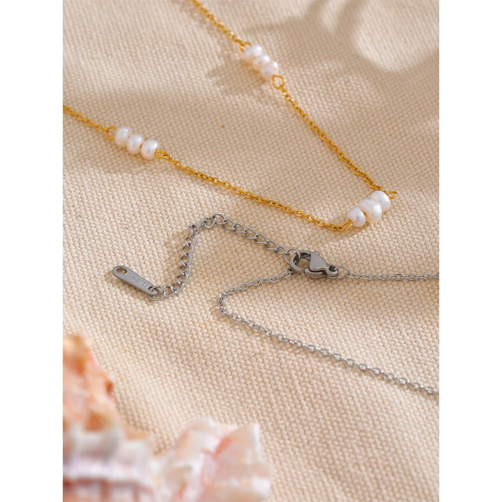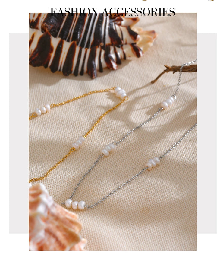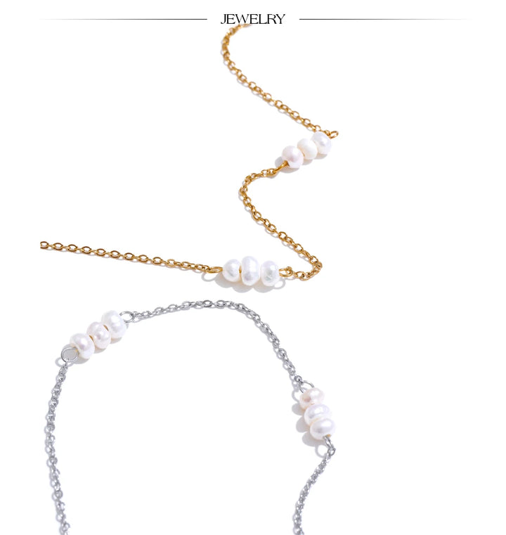 Yhpup 40+6CM Natural Freshwater Pearls Chain Collar Necklace 18k Gold Color Plated Trendy Fashion Daily Jewelry Accessories