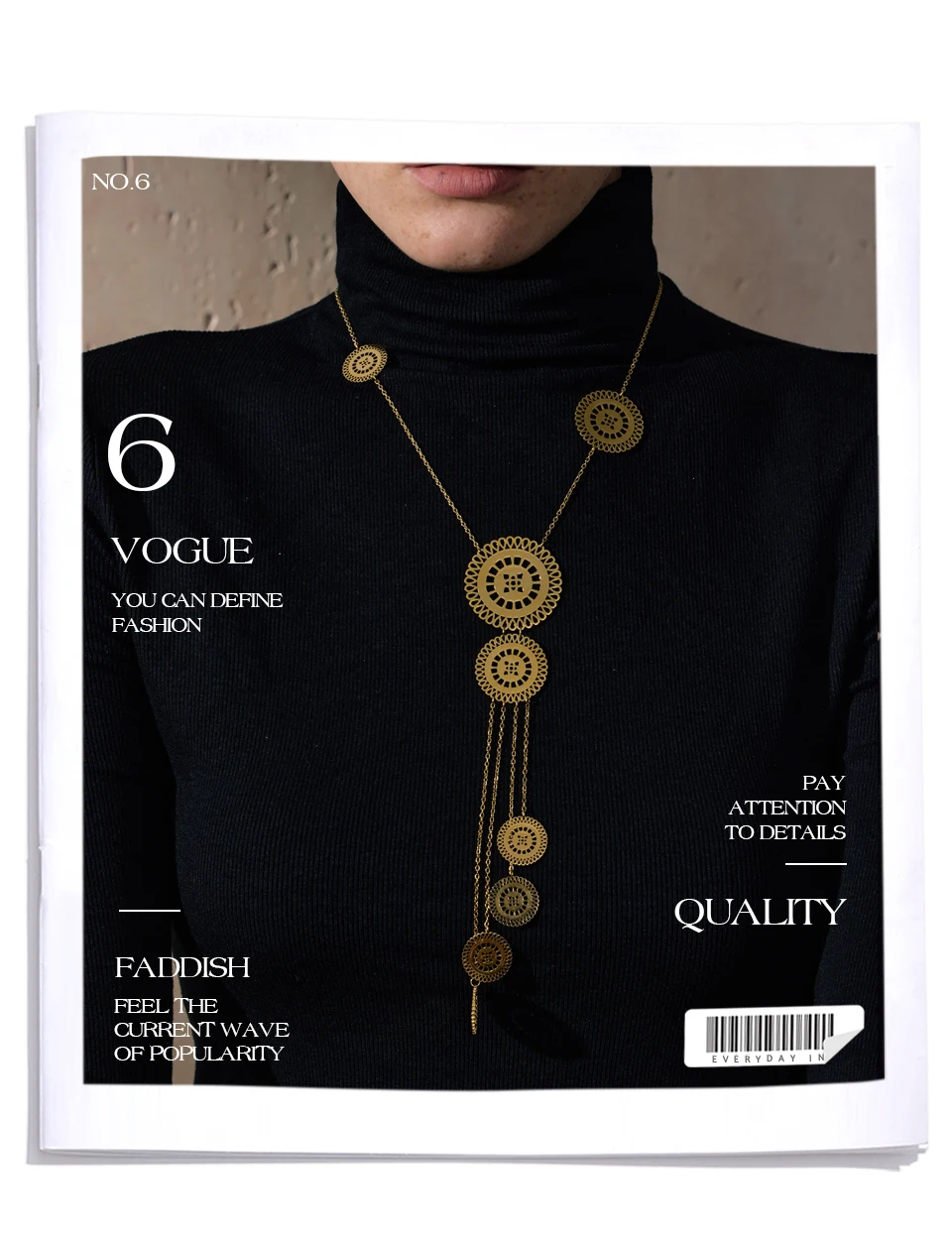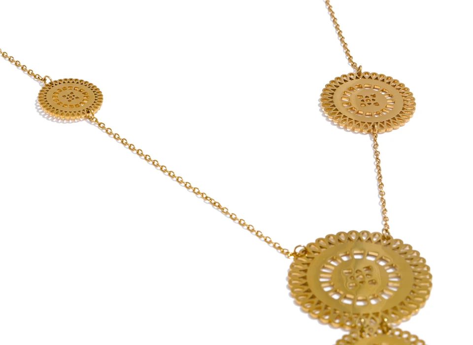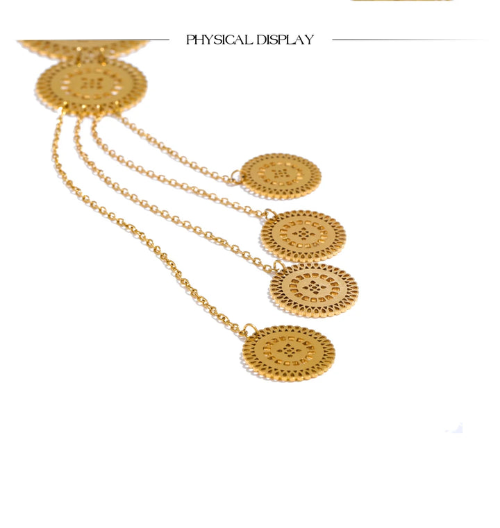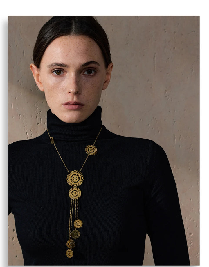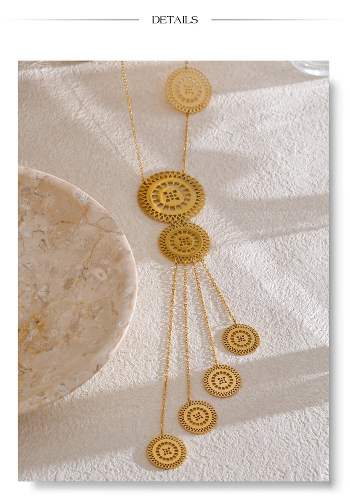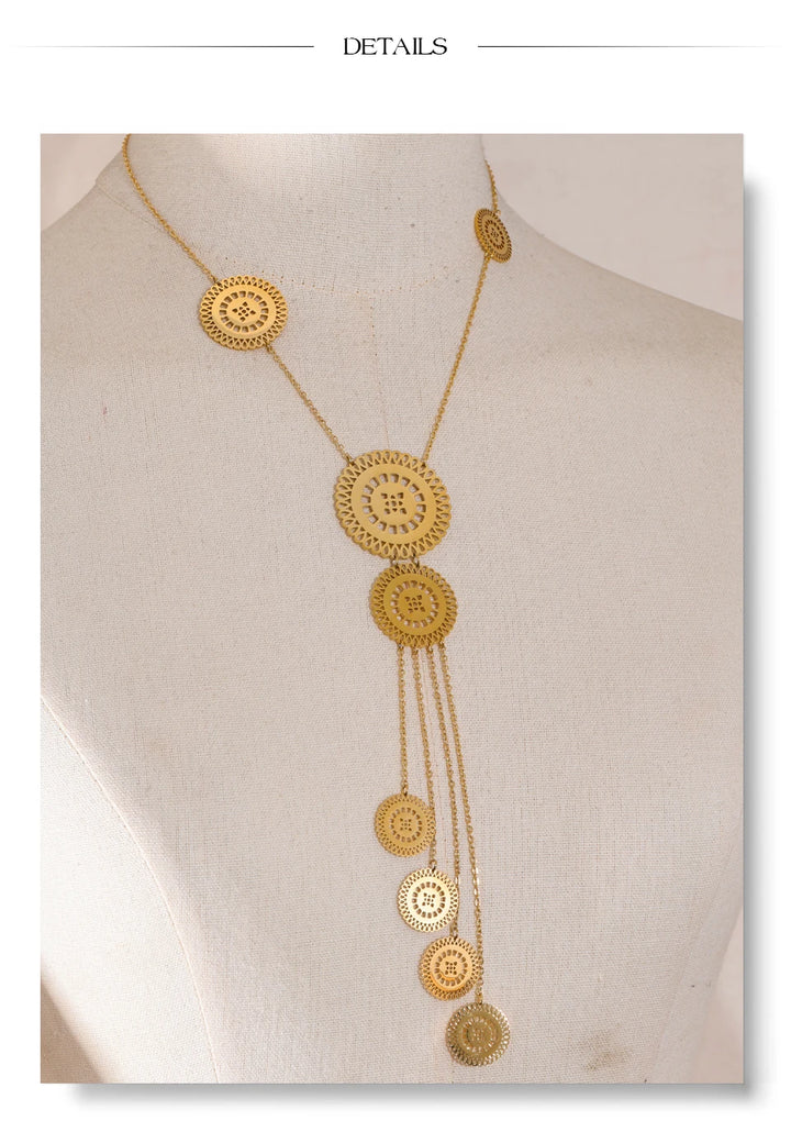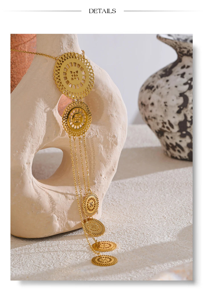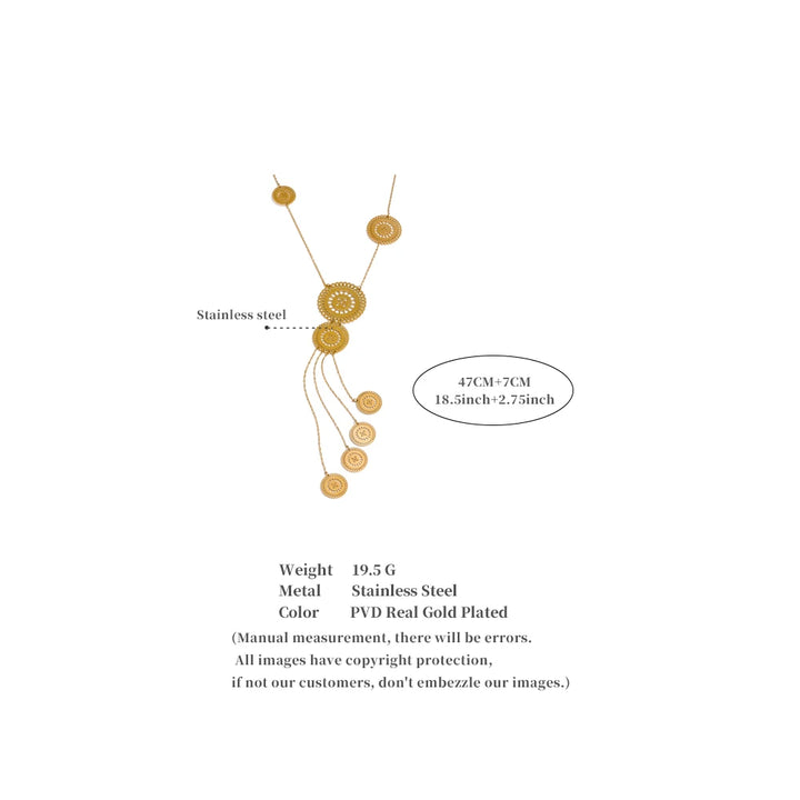 Yhpup 47+7cm Stainless Steel Round Hollow Long Drop Necklace 18K Gold Color Plated Personalized Fashion Jewelry Accessories NEW