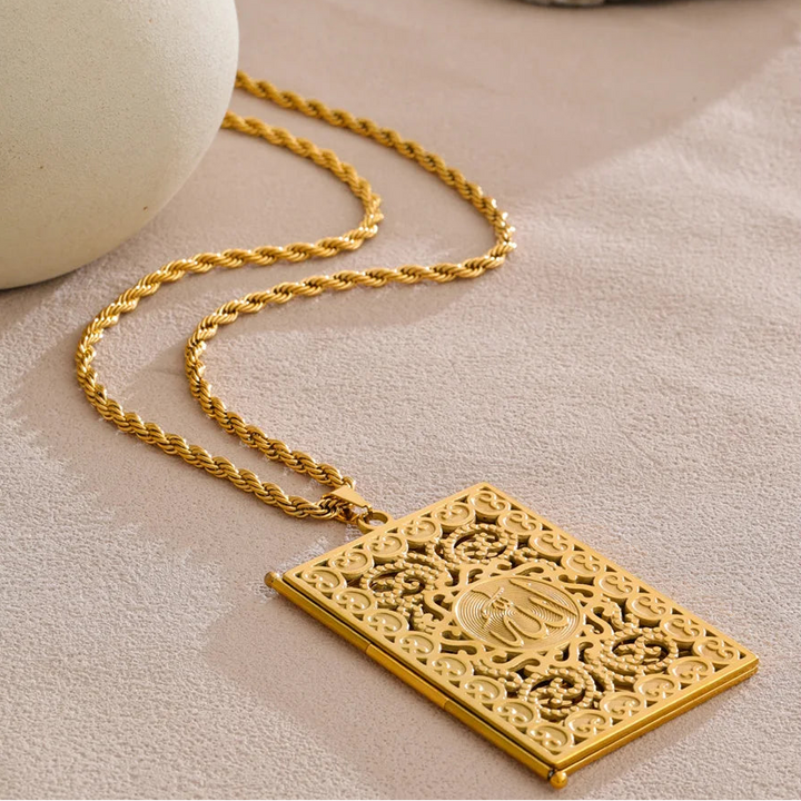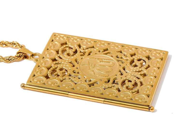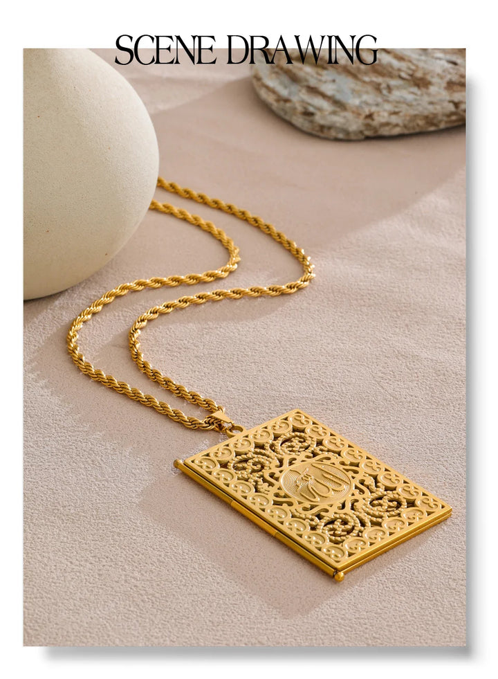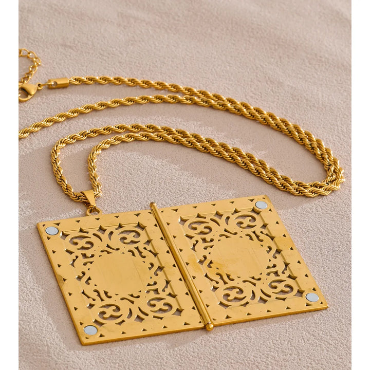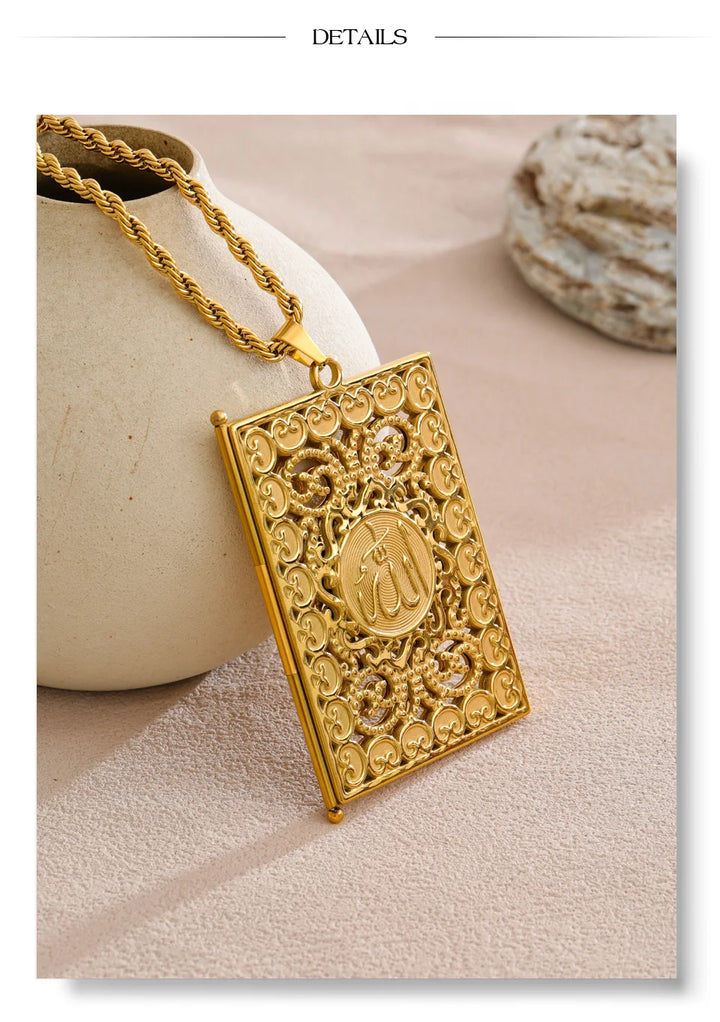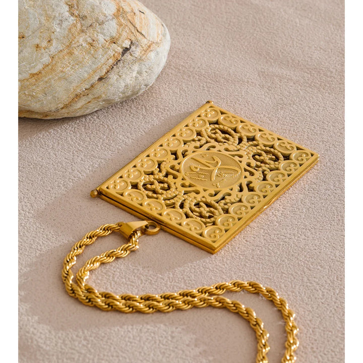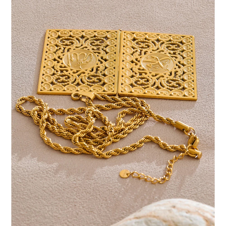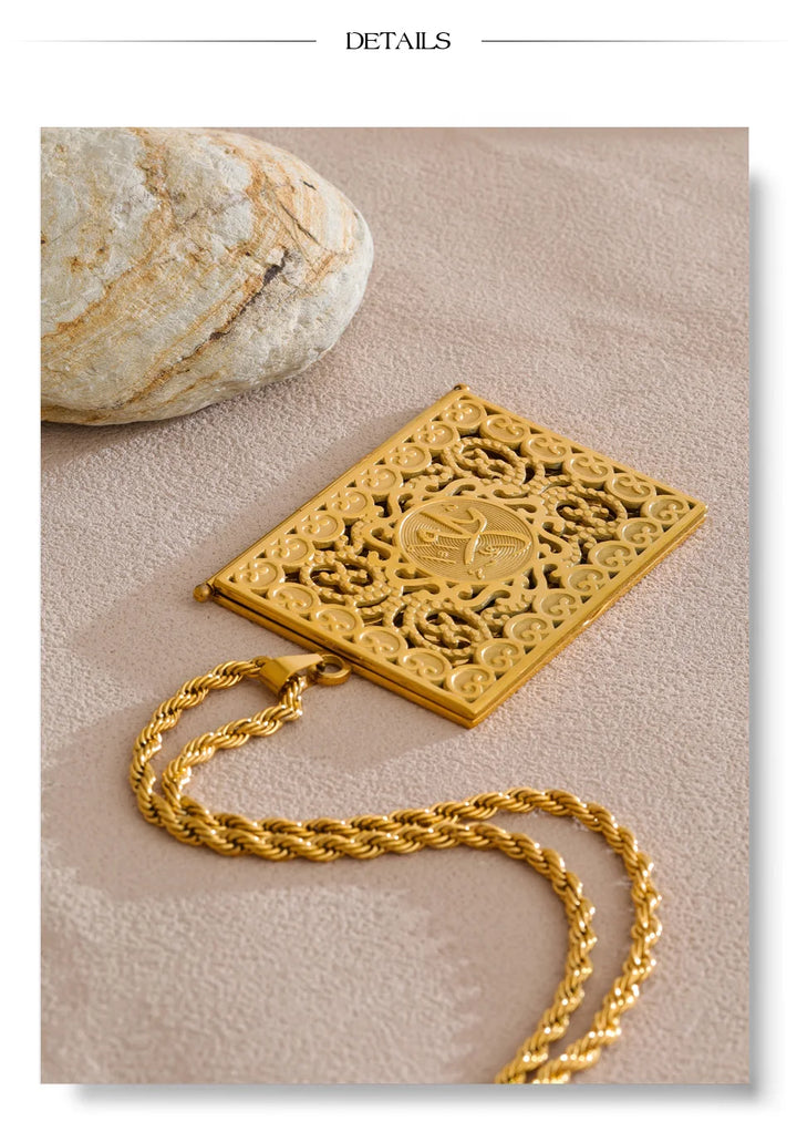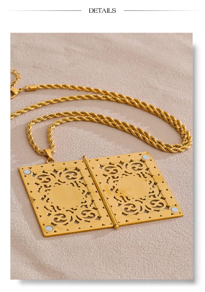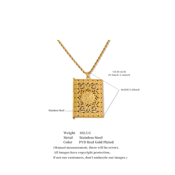 Yhpup 75+5cm Middle East Family Jewelry Stainless Steel Big Pendant Picture Frame Rectangle Necklace 18K PVD Plated Waterproof