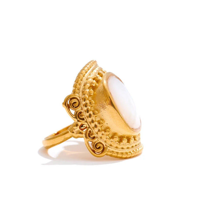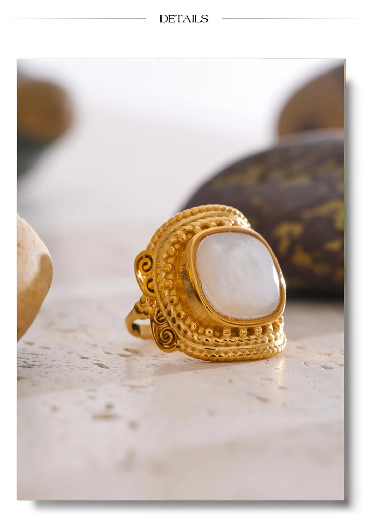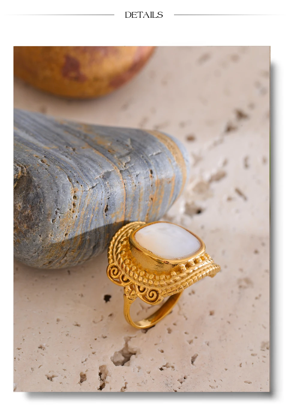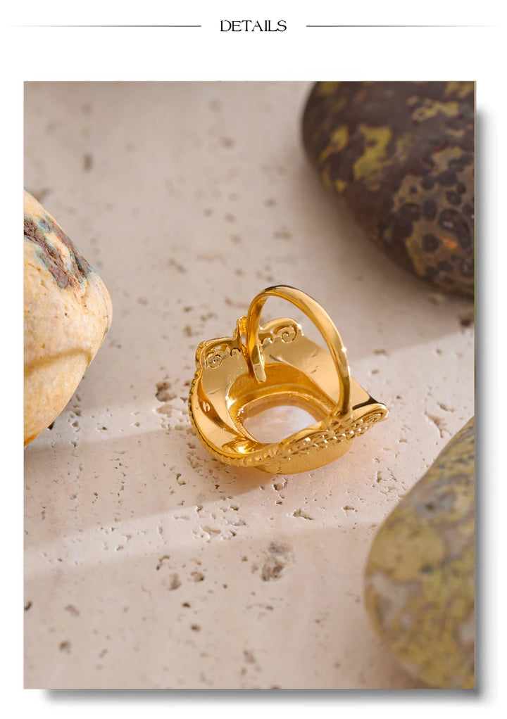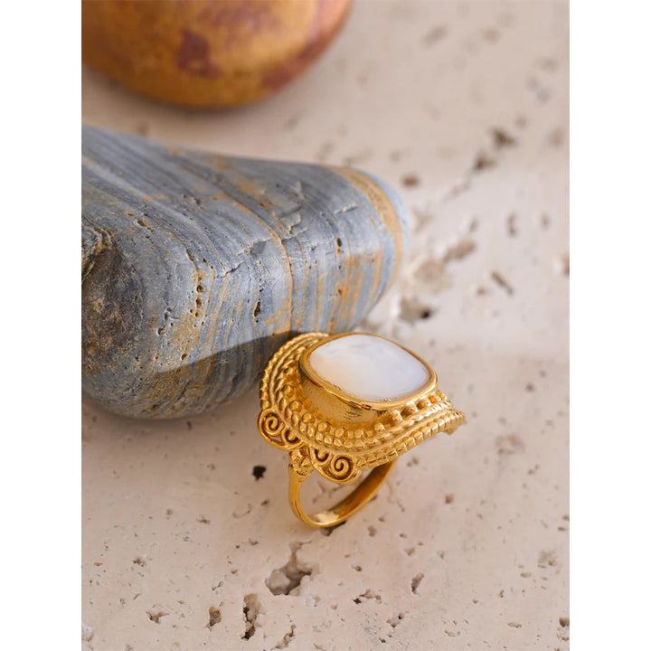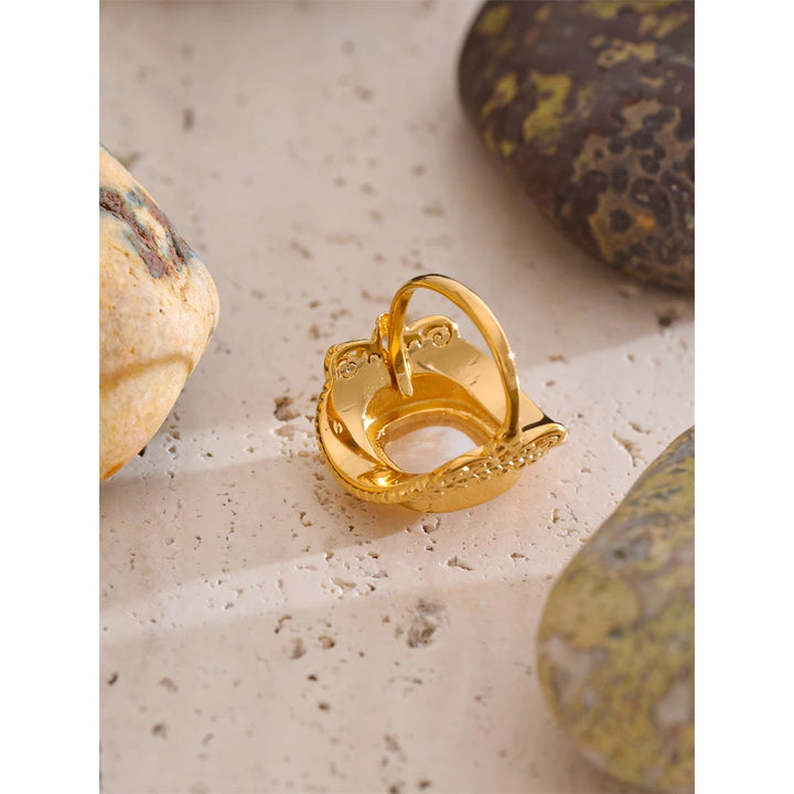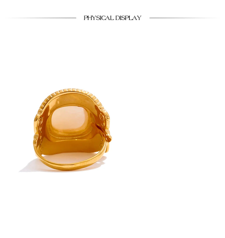 Yhpup Adjustable High Quality Thicker Shell Golden Vintage Ring 2025 PVD Plated Stainless Steel Finger Fashion Jewelry