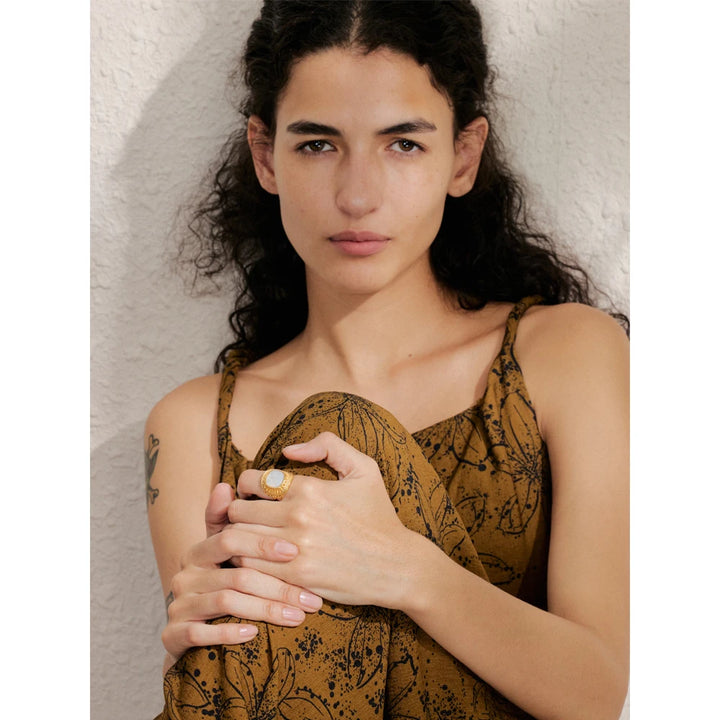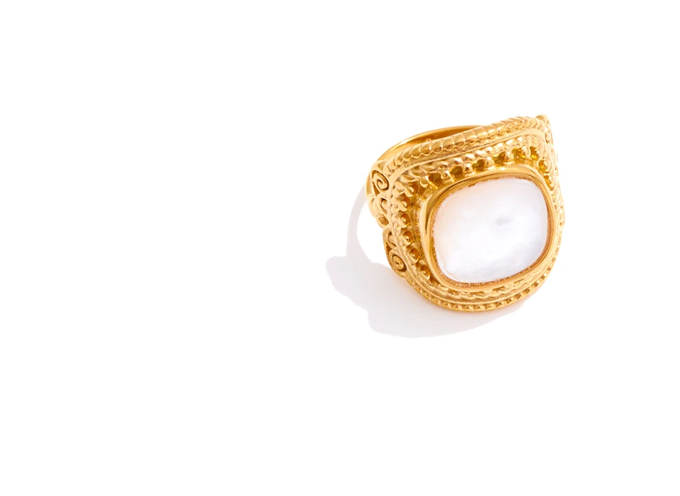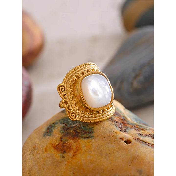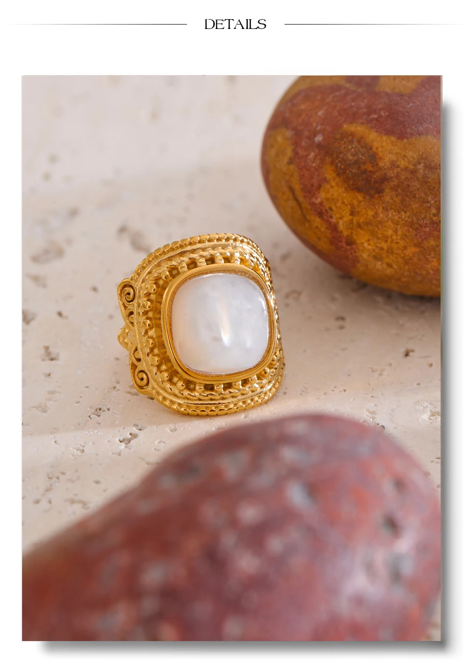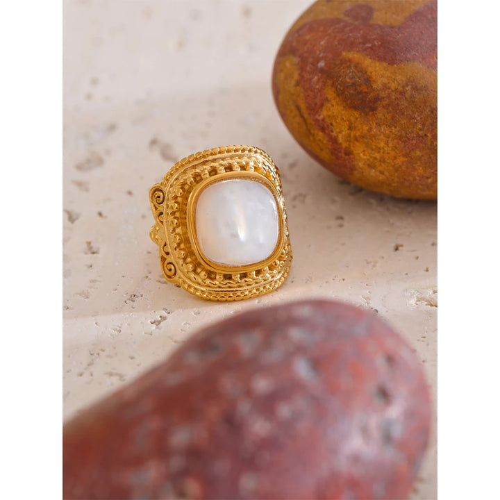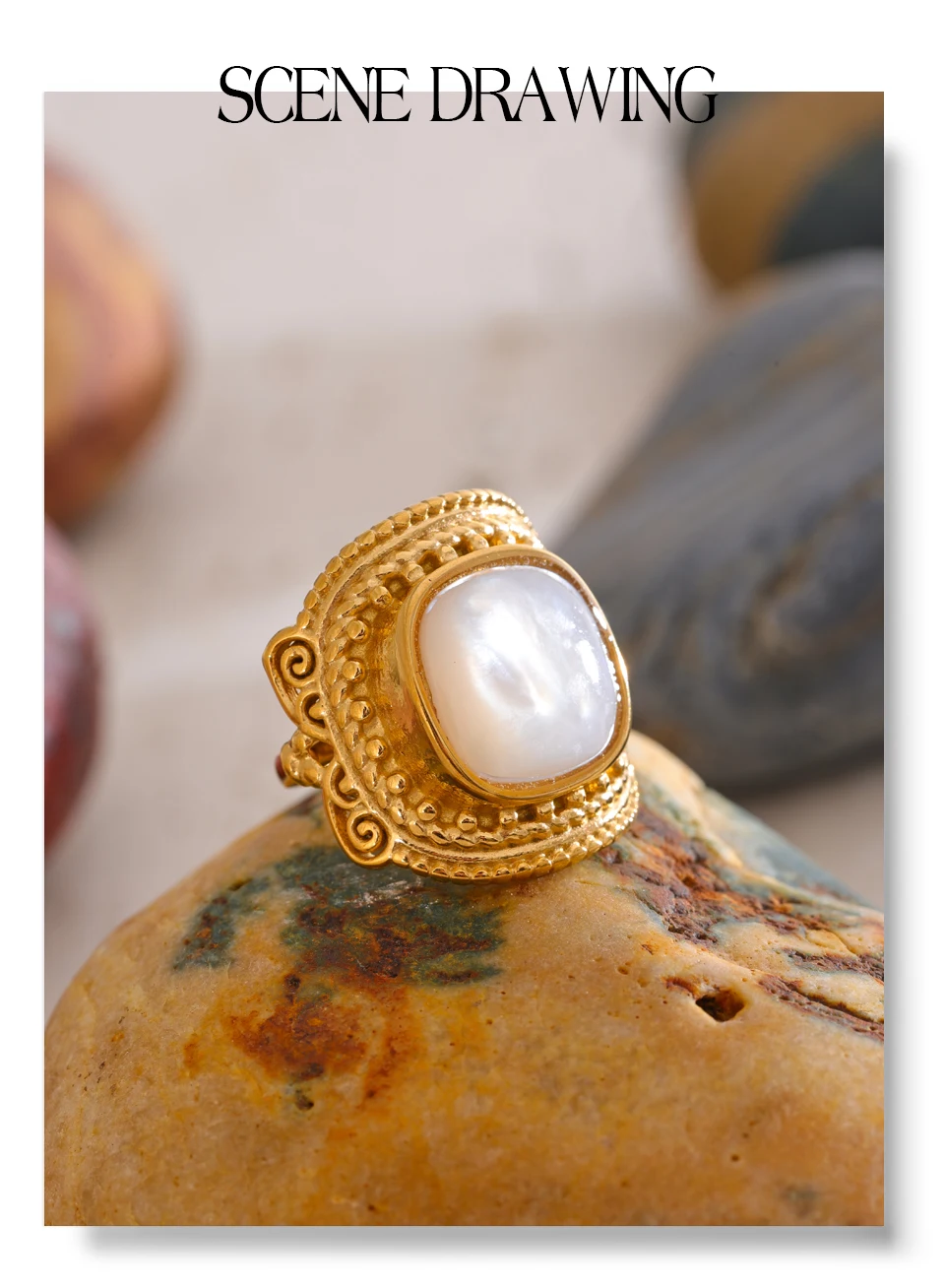 Yhpup Adjustable High Quality Thicker Shell Golden Vintage Ring 2025 PVD Plated Stainless Steel Finger Fashion Jewelry