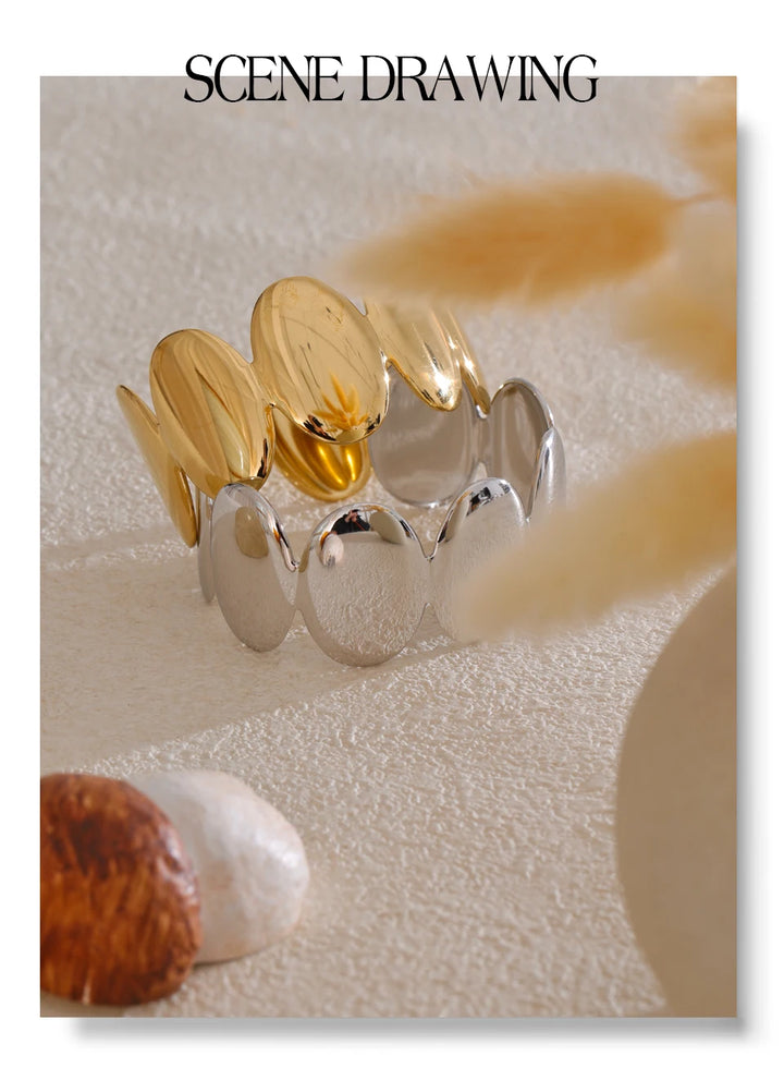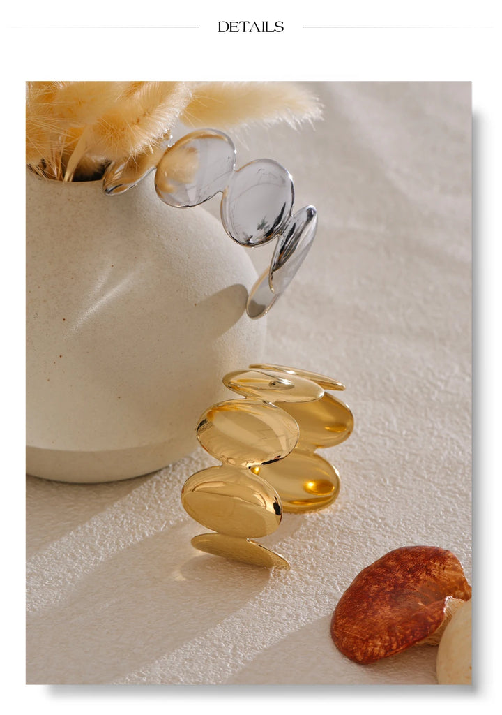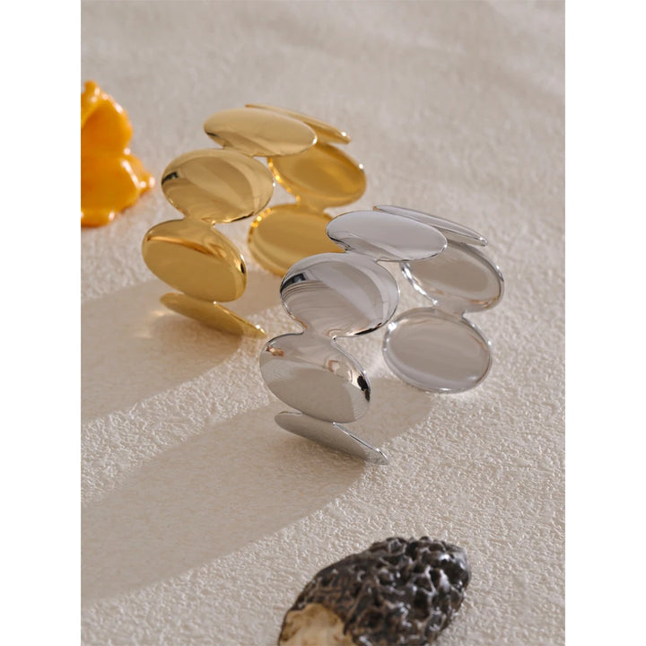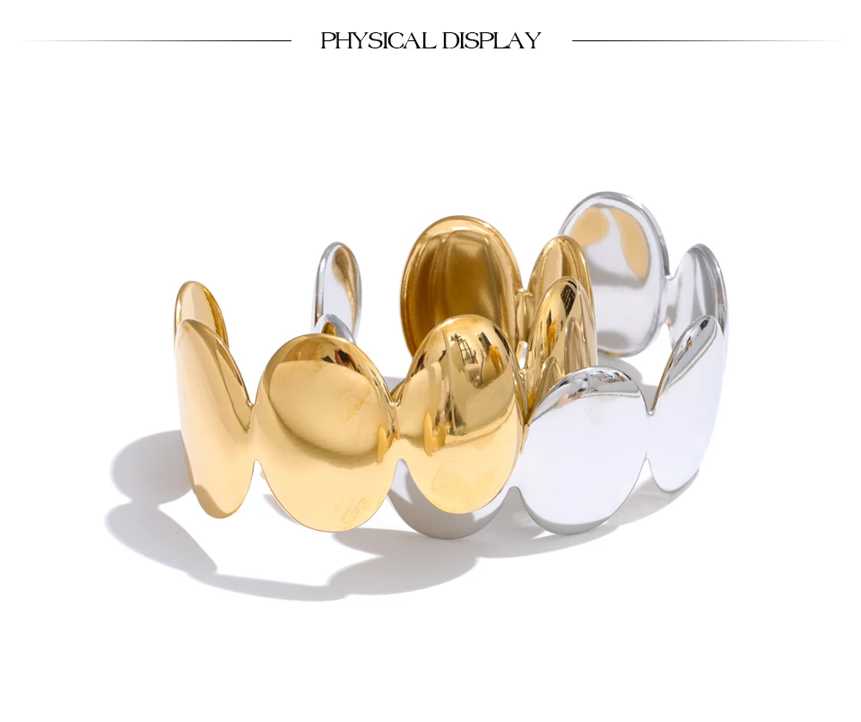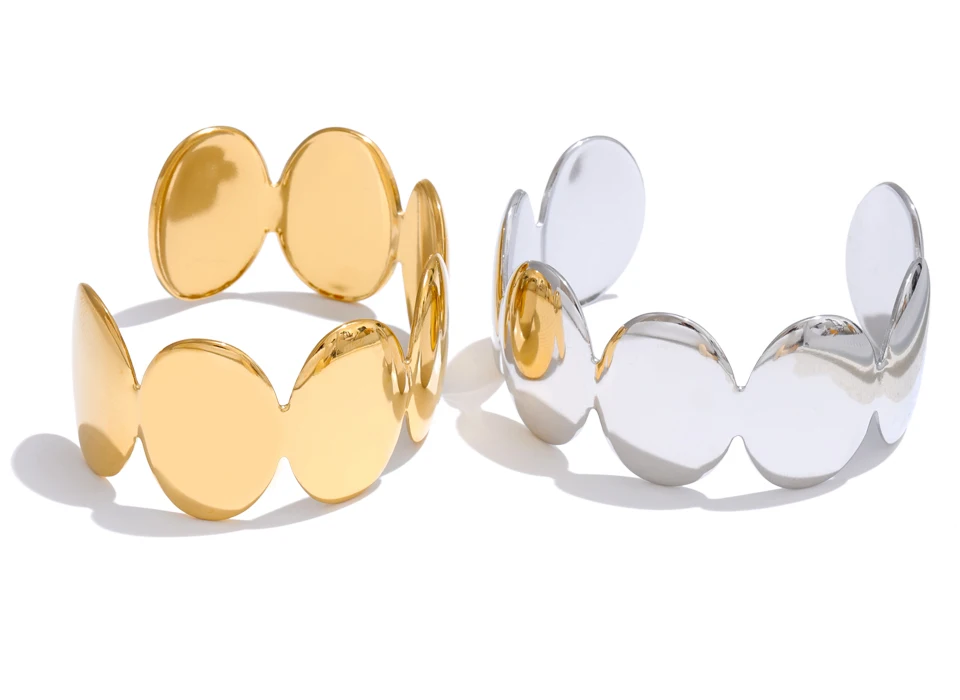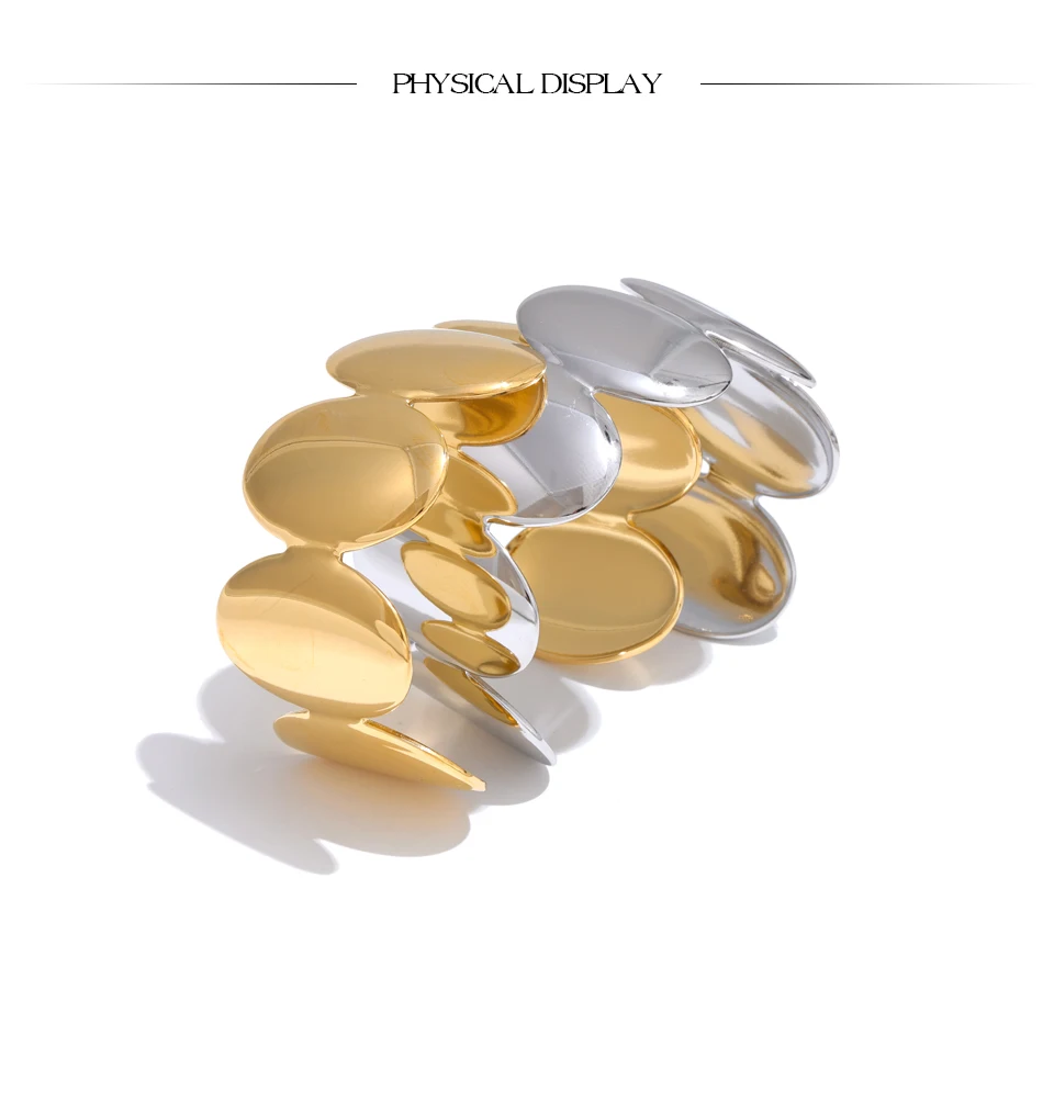 Yhpup Adjustable Stainless Steel Smooth Metal Handmade Polished Fashion Cuff Bracelet Bangle PVD Plated Charm Wrist Jewelry New