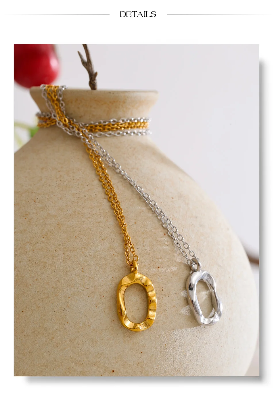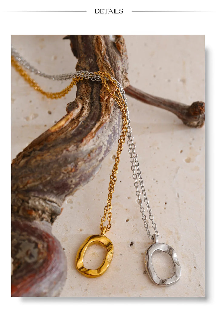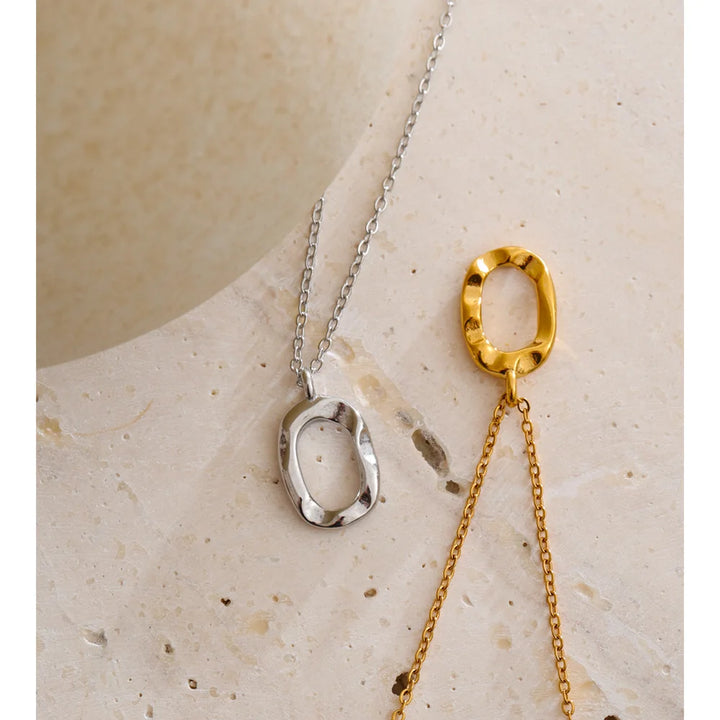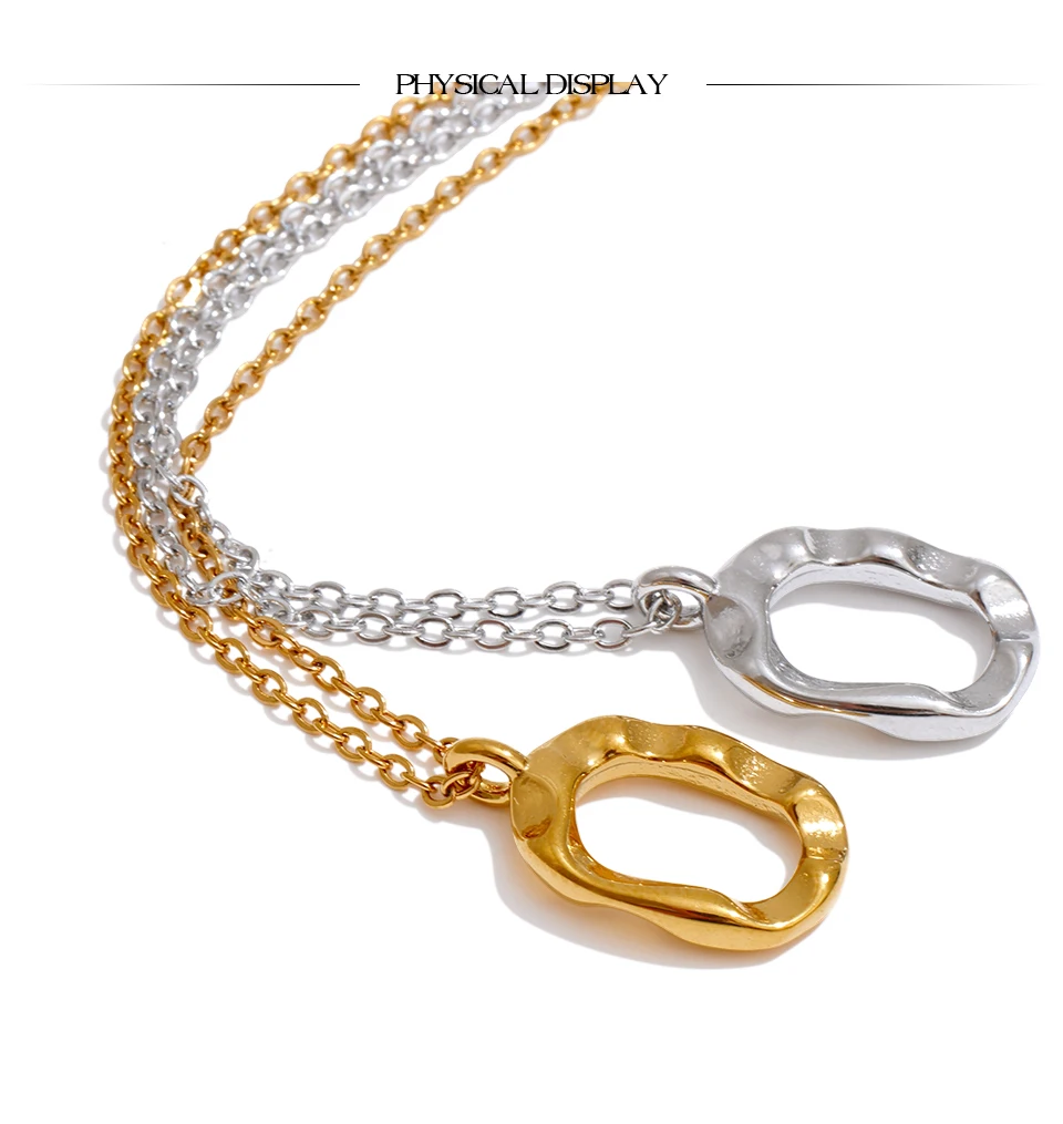 Yhpup Distinctive Stainless Steel Hollow Oval Pendant Necklace 18K PVD Plated Waterproof Popular Jewelry Wholesale