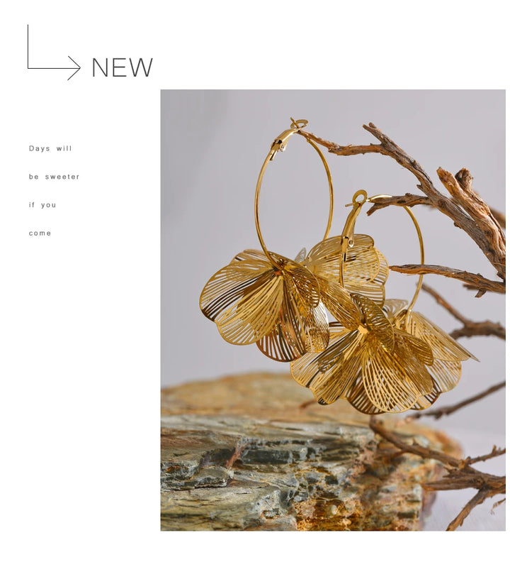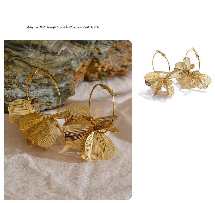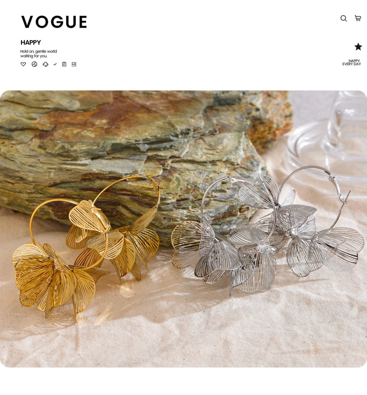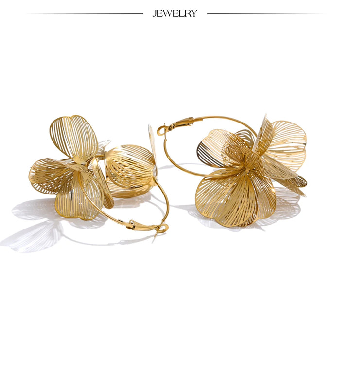 Yhpup Exclusive Design Stainless Steel Metal Flower Big Hoop Earrings Personality Fashion Waterproof Eye-catching Jewelry