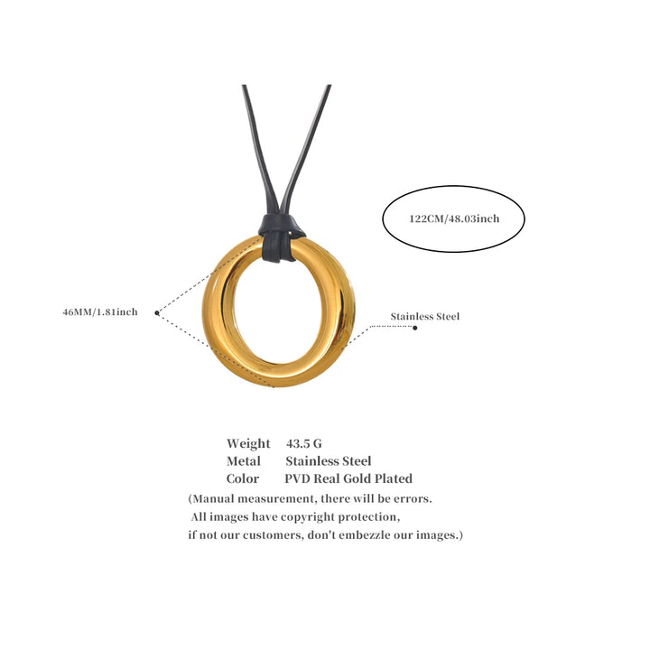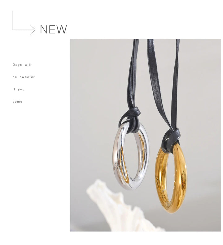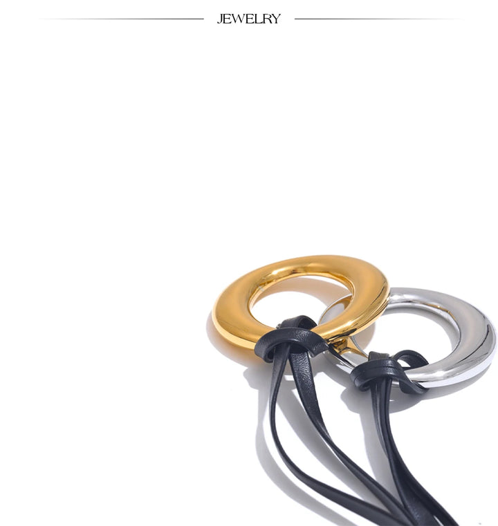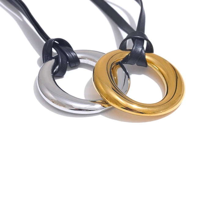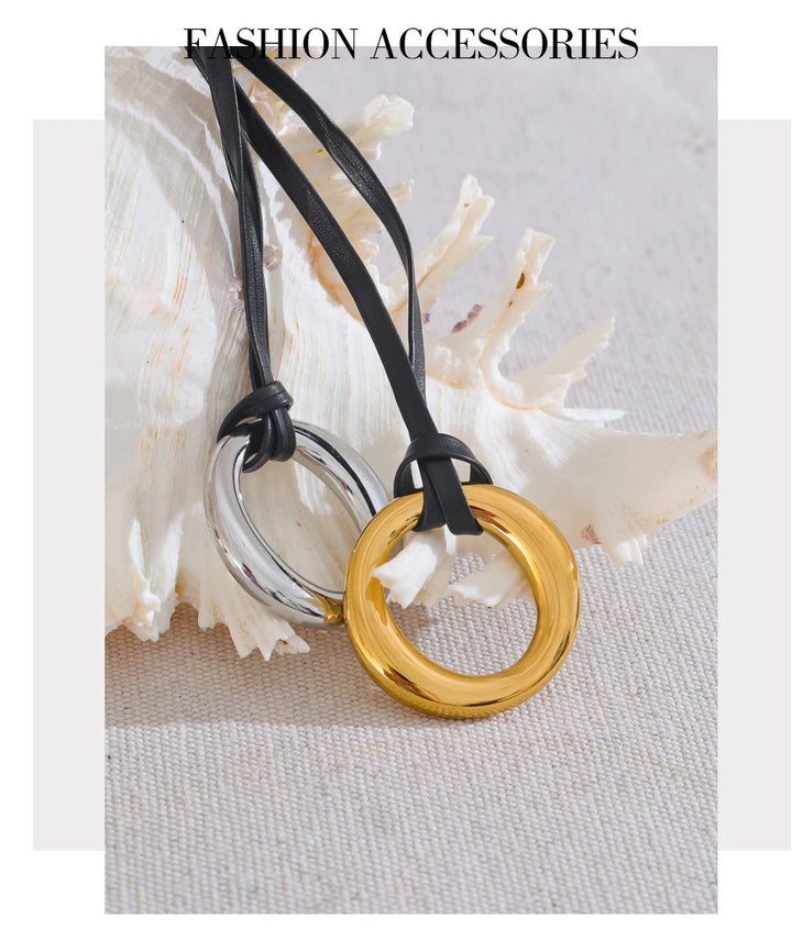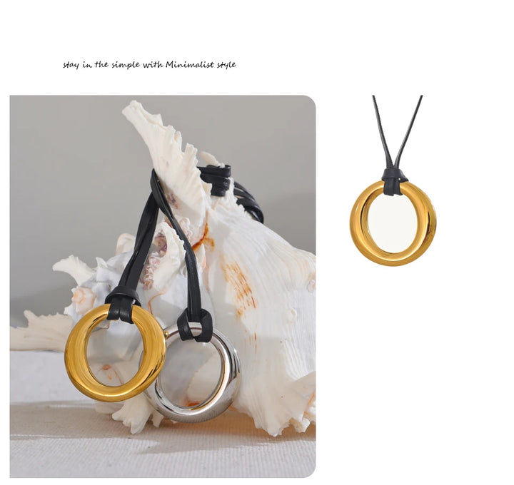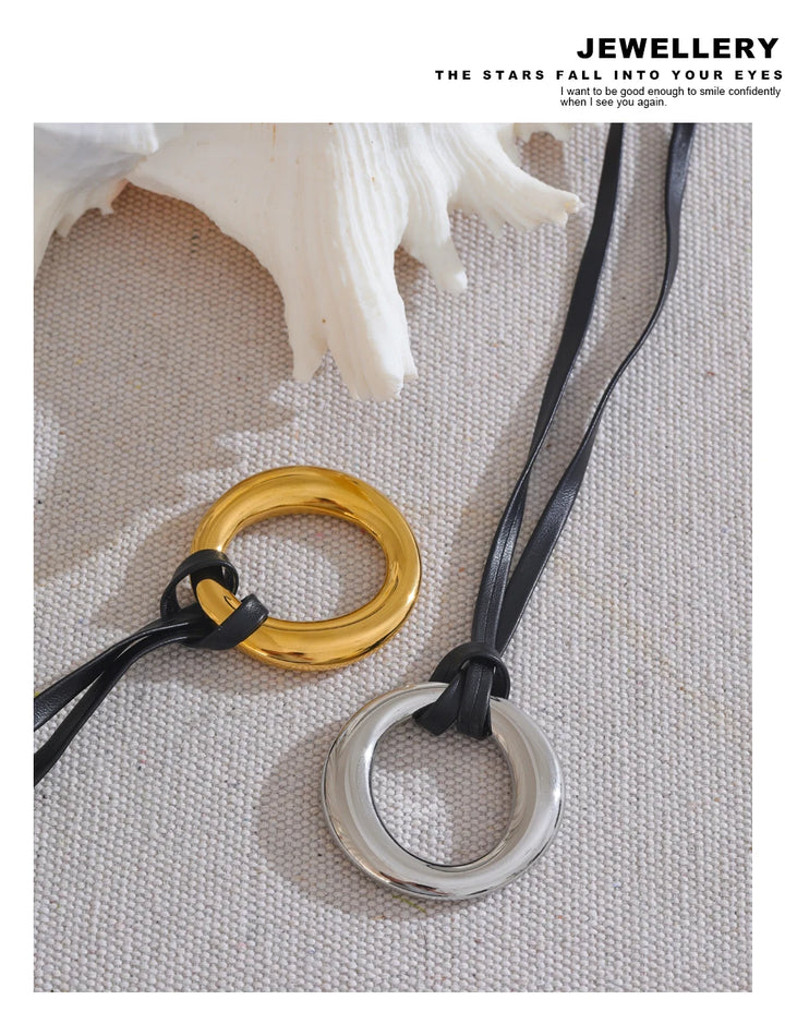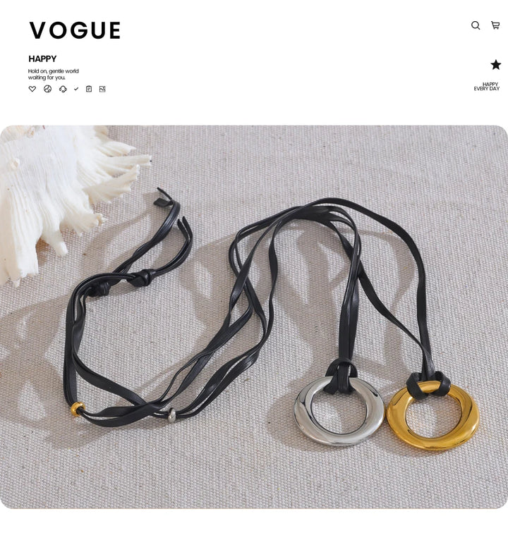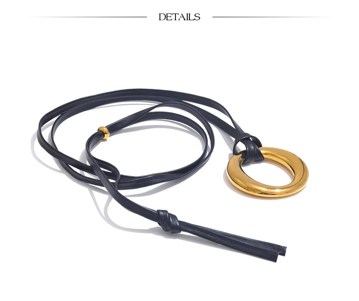 Yhpup Long PU Leather Stainless Steel Round Pendant Fashion Bib Necklace Minimalist Tarnish Free for Women Stylish Trend Jewelry
