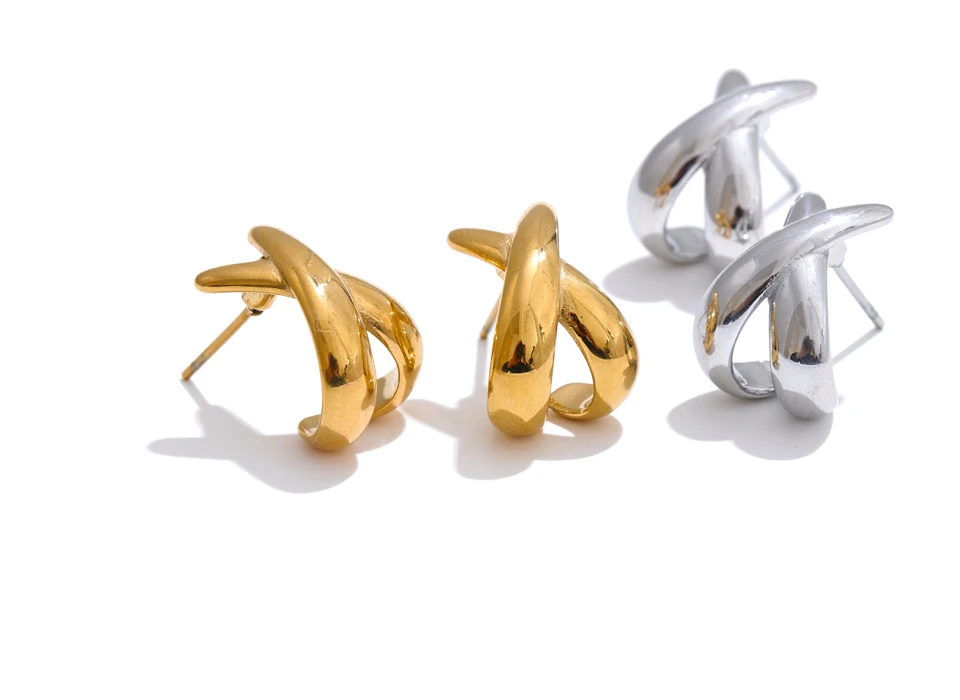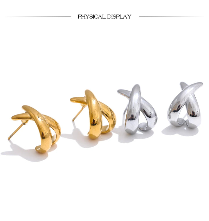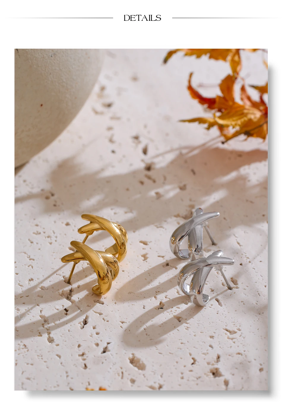 Yhpup Minimalist Metal X-Shape Stud Earrings 18K PVD Plated Daily Stainless Steel Attractive Fashion Jewelry for Women