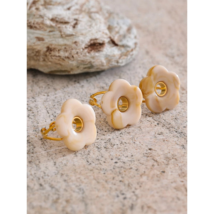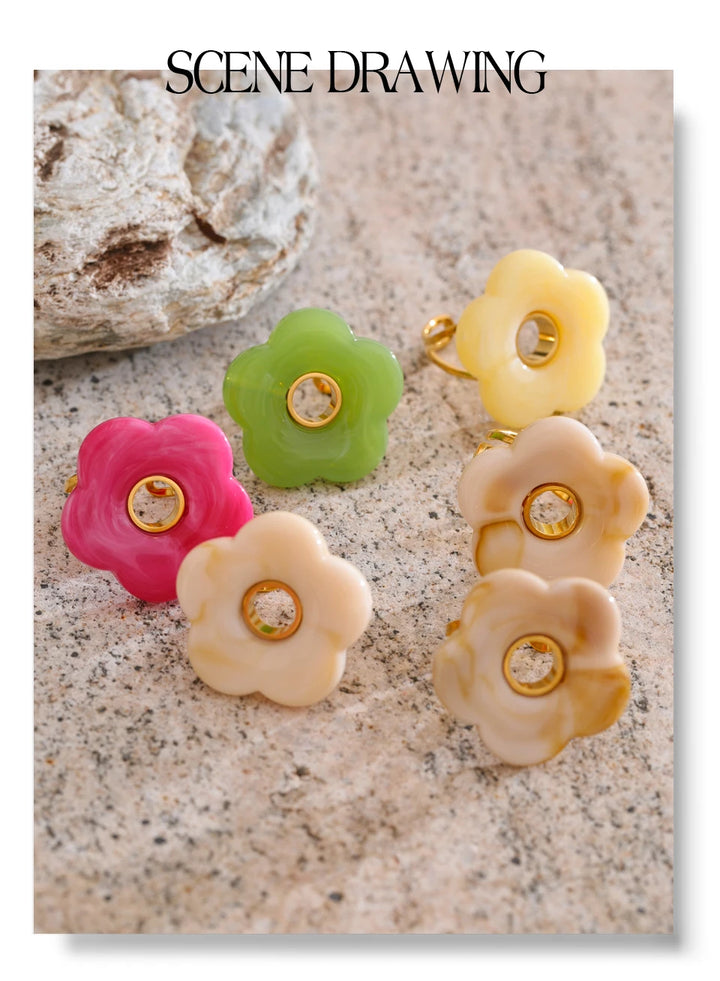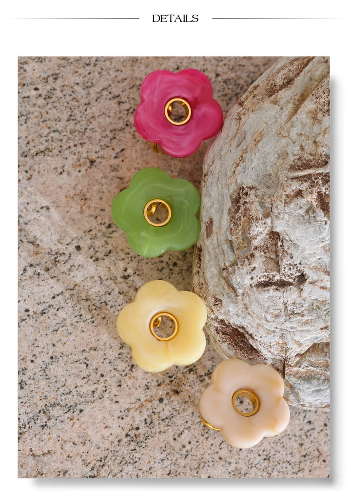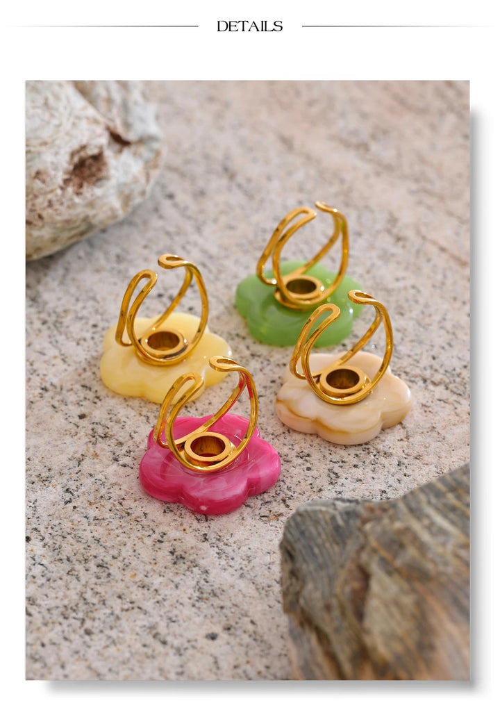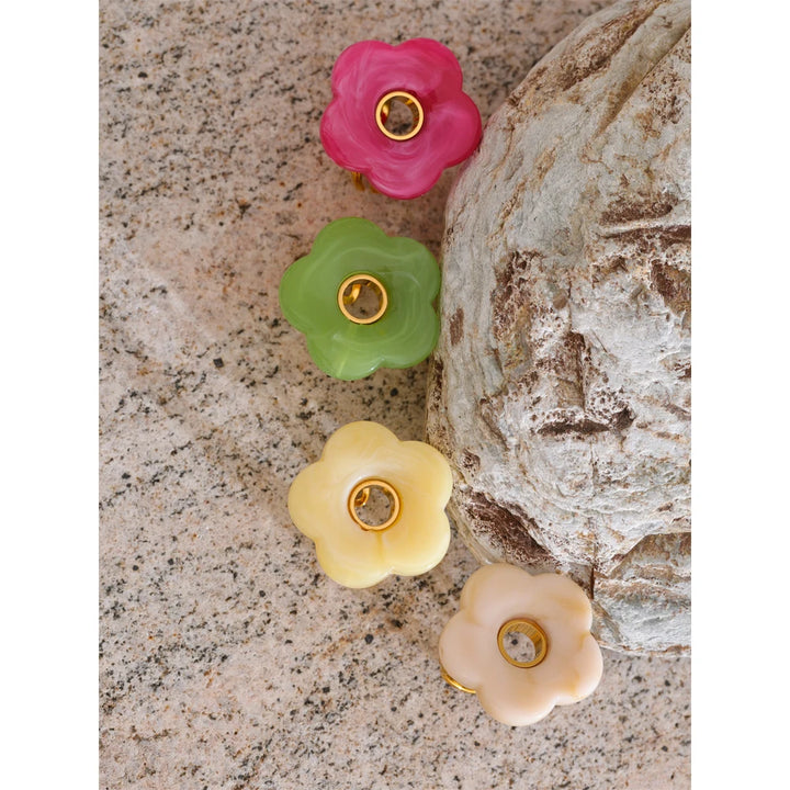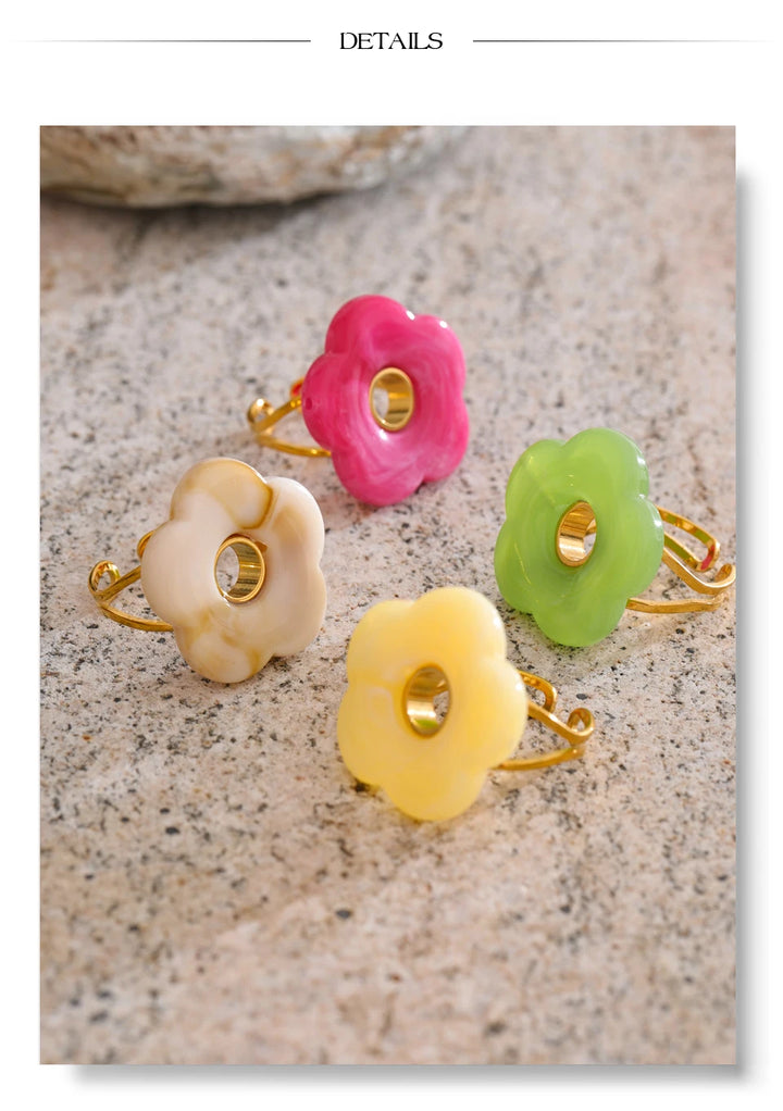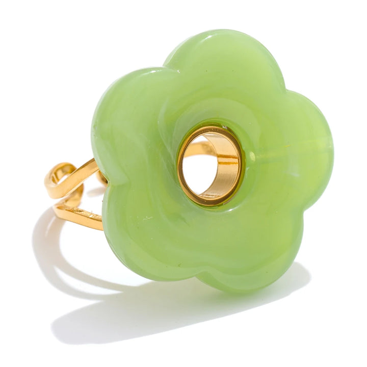 Yhpup Pink Green Yellow Grey Thick Resin Flower Adjustable Ring 18K Golden Plated Stainless Steel Y2K Arrivals Popular Jewelry