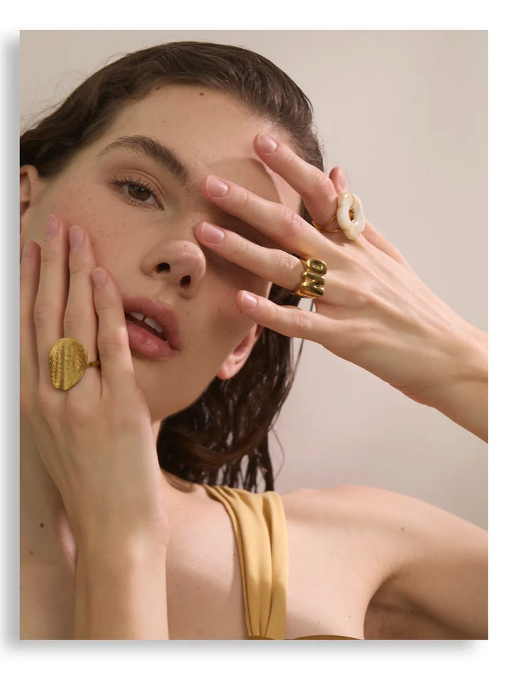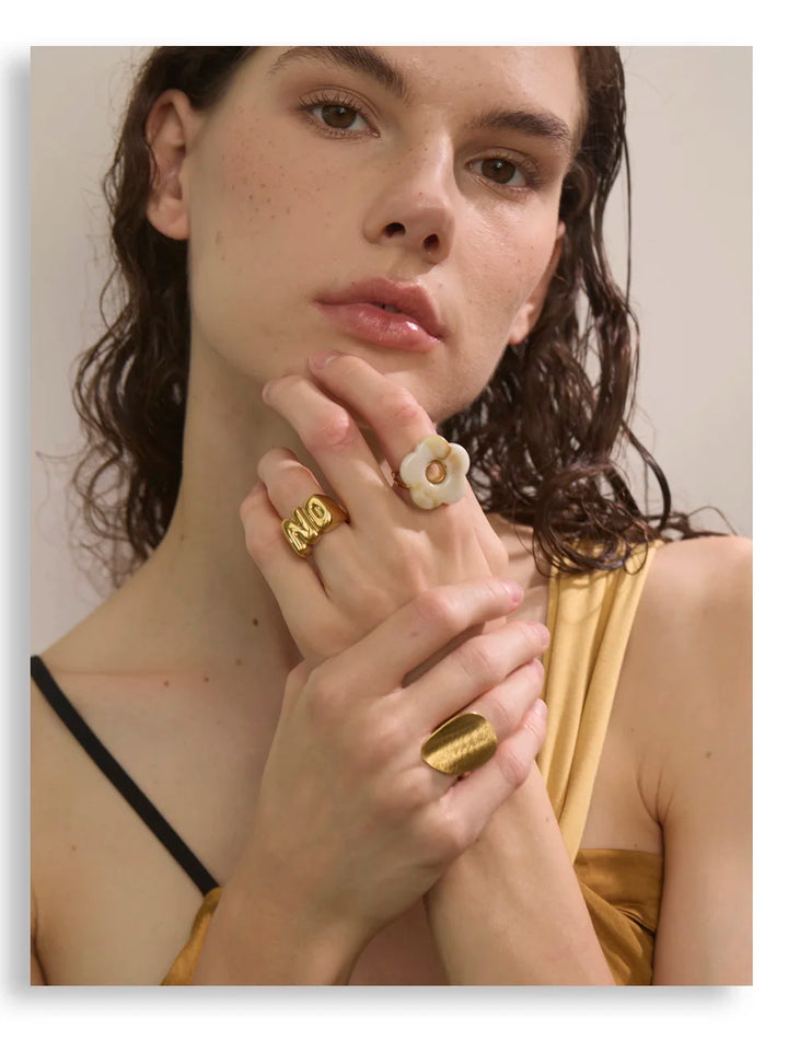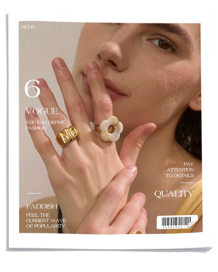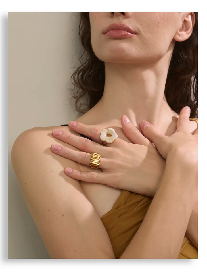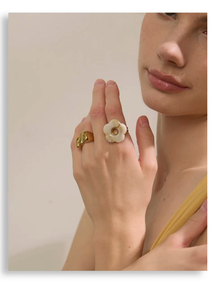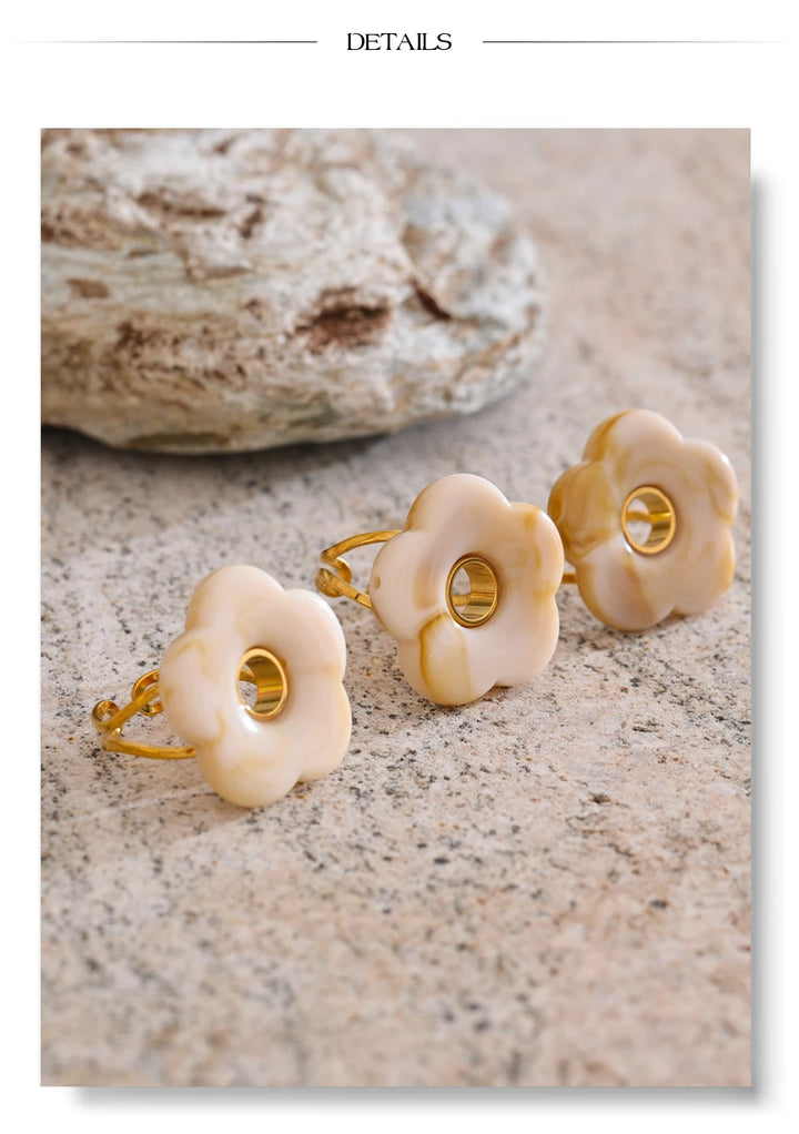 Yhpup Pink Green Yellow Grey Thick Resin Flower Adjustable Ring 18K Golden Plated Stainless Steel Y2K Arrivals Popular Jewelry