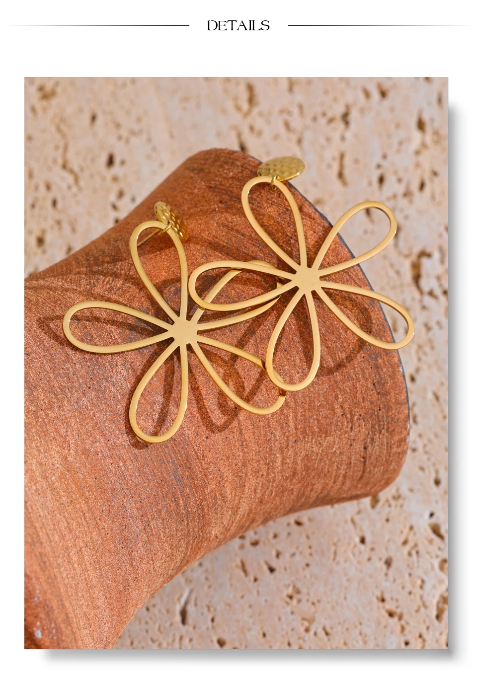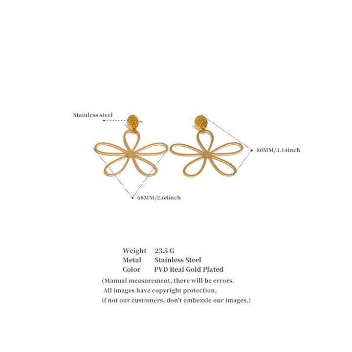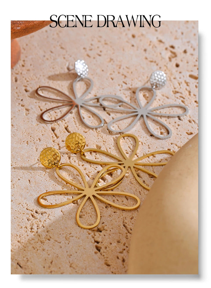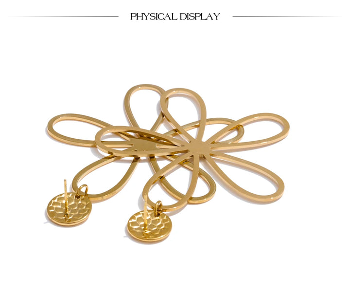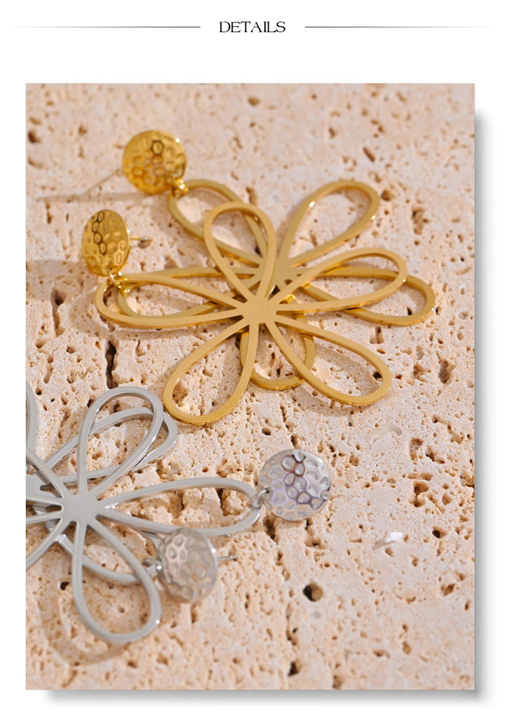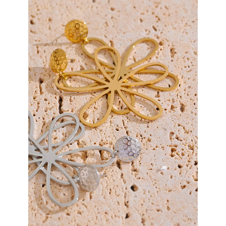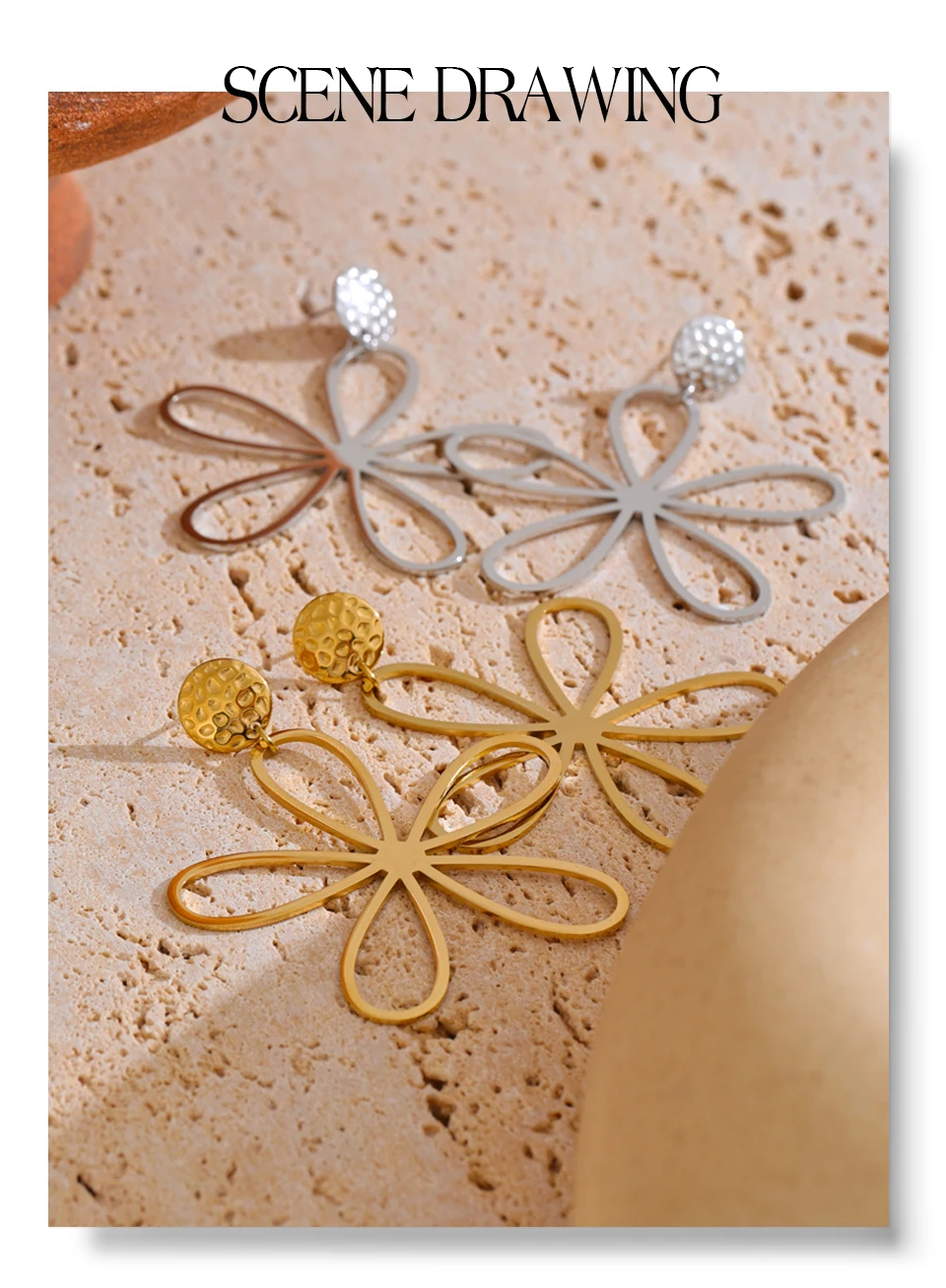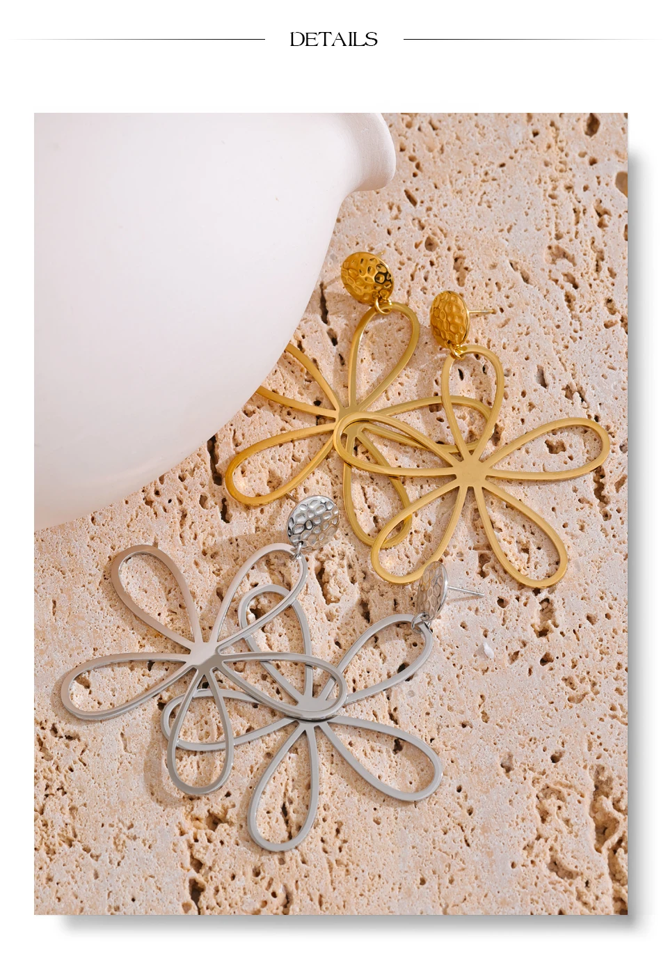 Yhpup Popular Style Stainless Steel Big Flower Hollow Drop Earrings for Women Waterproof Trendy Statement Jewelry Accessories