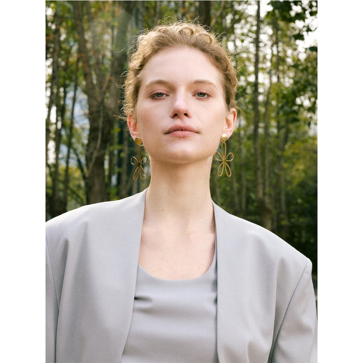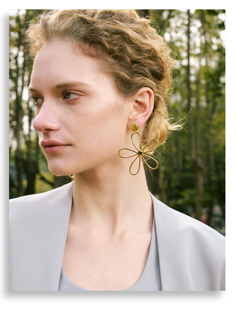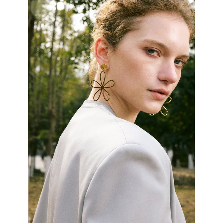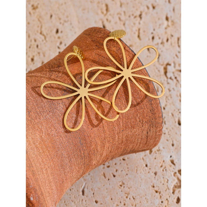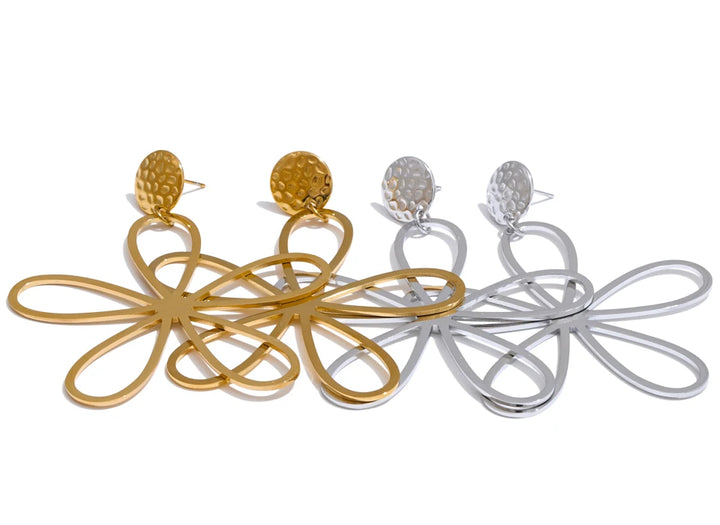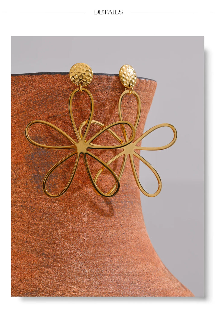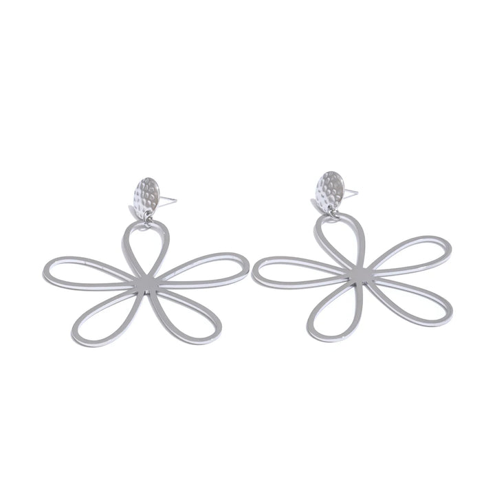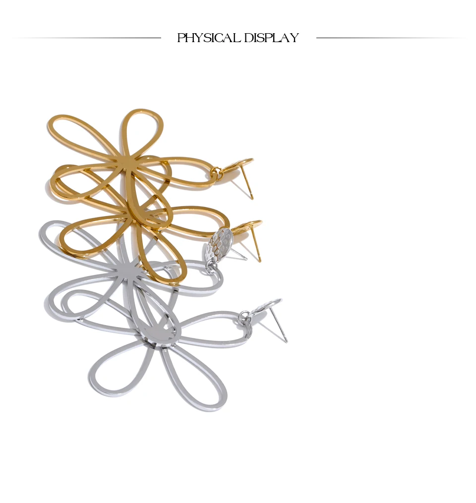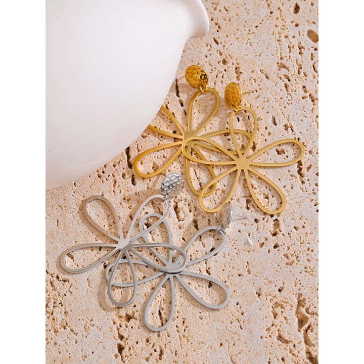 Yhpup Popular Style Stainless Steel Big Flower Hollow Drop Earrings for Women Waterproof Trendy Statement Jewelry Accessories