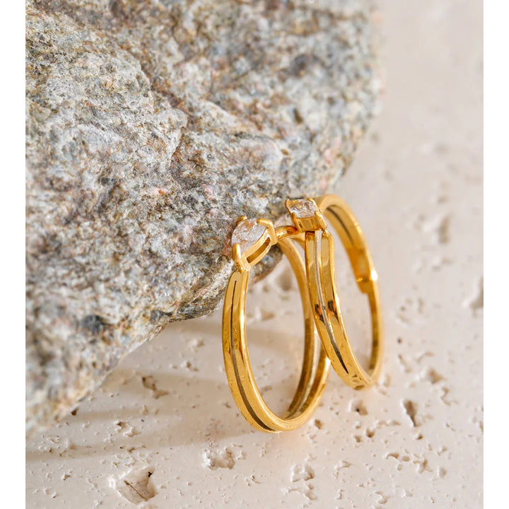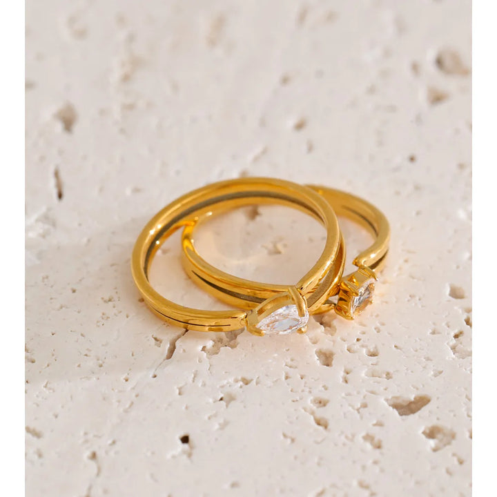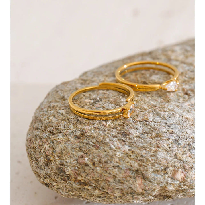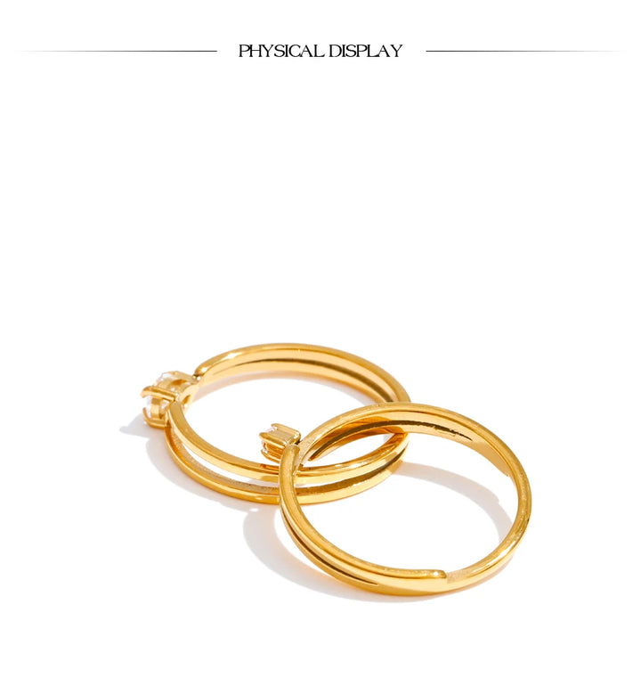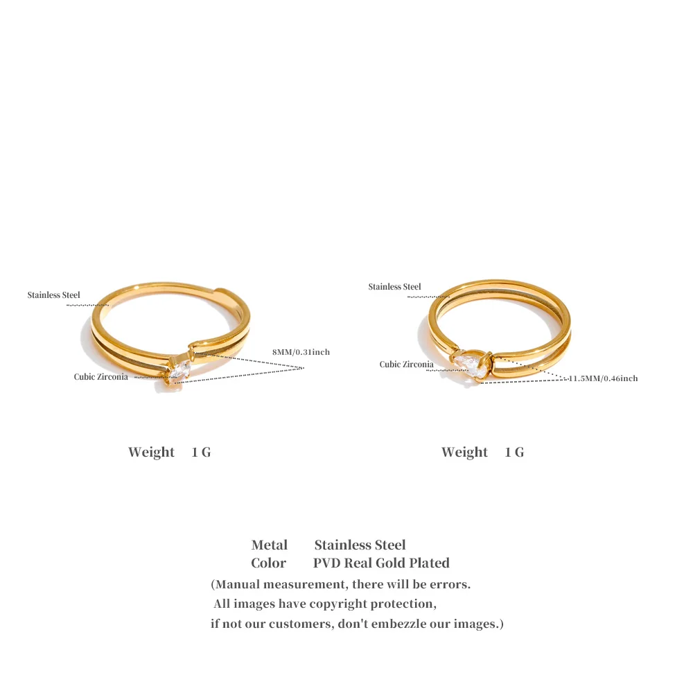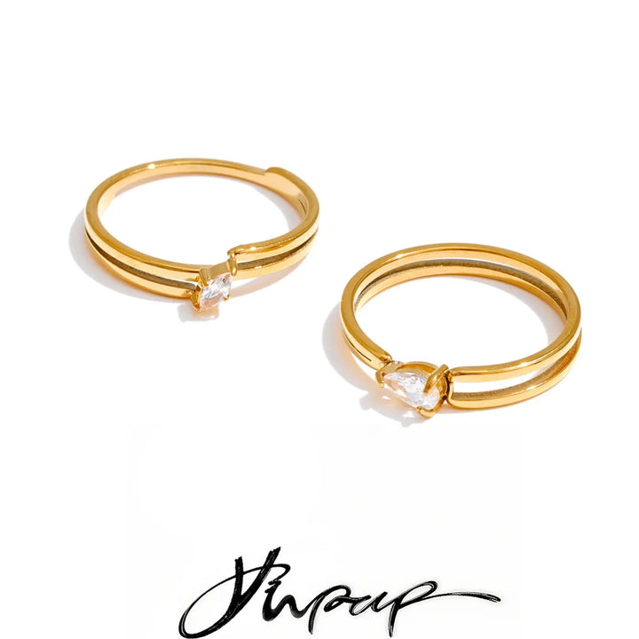 Yhpup Size 678 Stainless Steel Cubic Zirconia Double-Layer Ring for All Occasions High Quality Fashion Minimalist Jewelry Gift