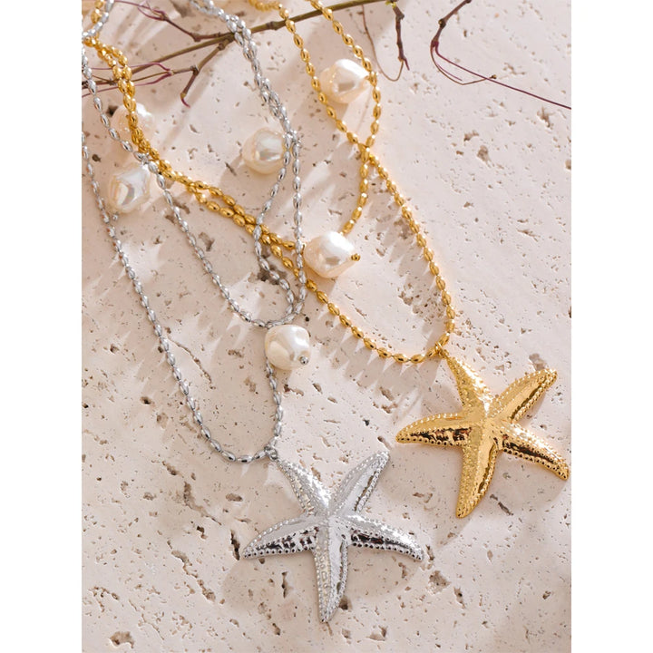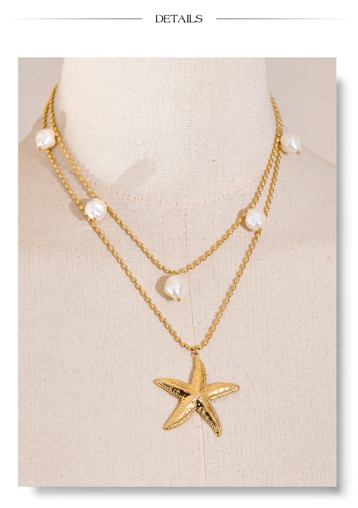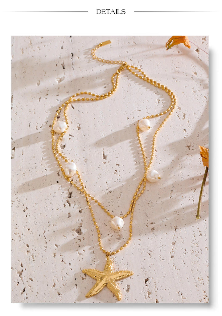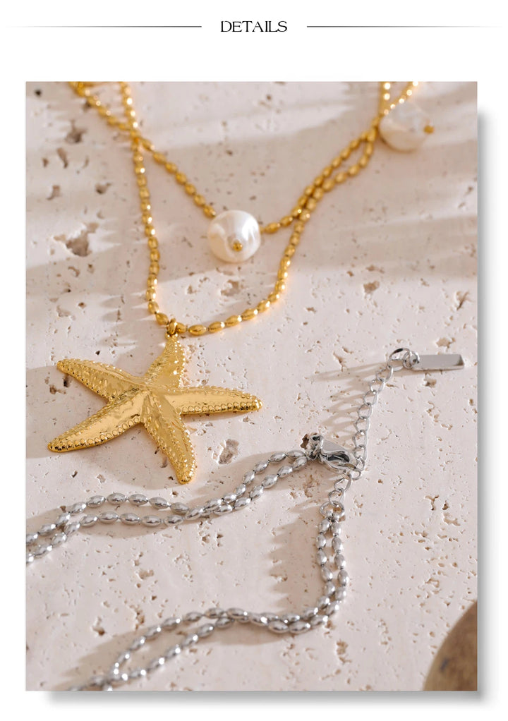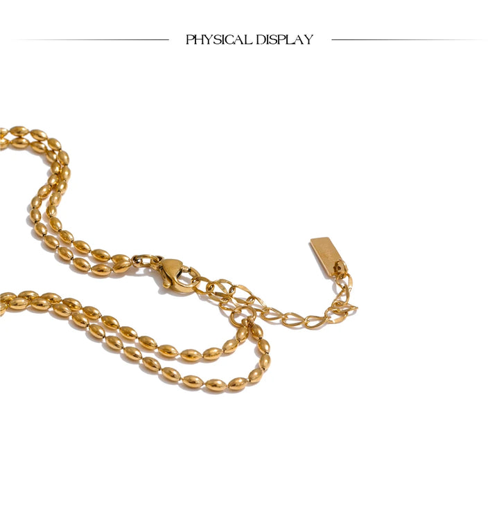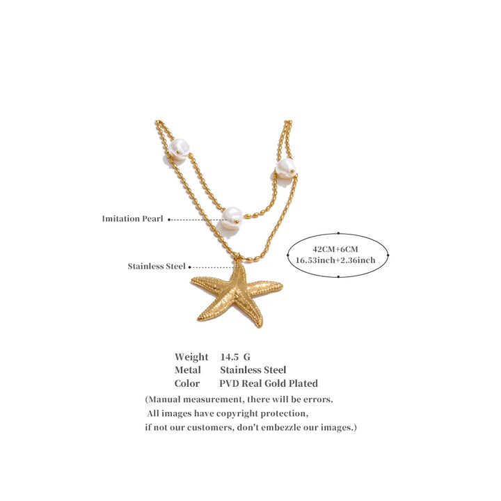 Yhpup Stainless Steel Double Layer Ocean Summer Holiday Necklace Jewelry Waterproof Handmade for Women Gold Platinum PVD Plated