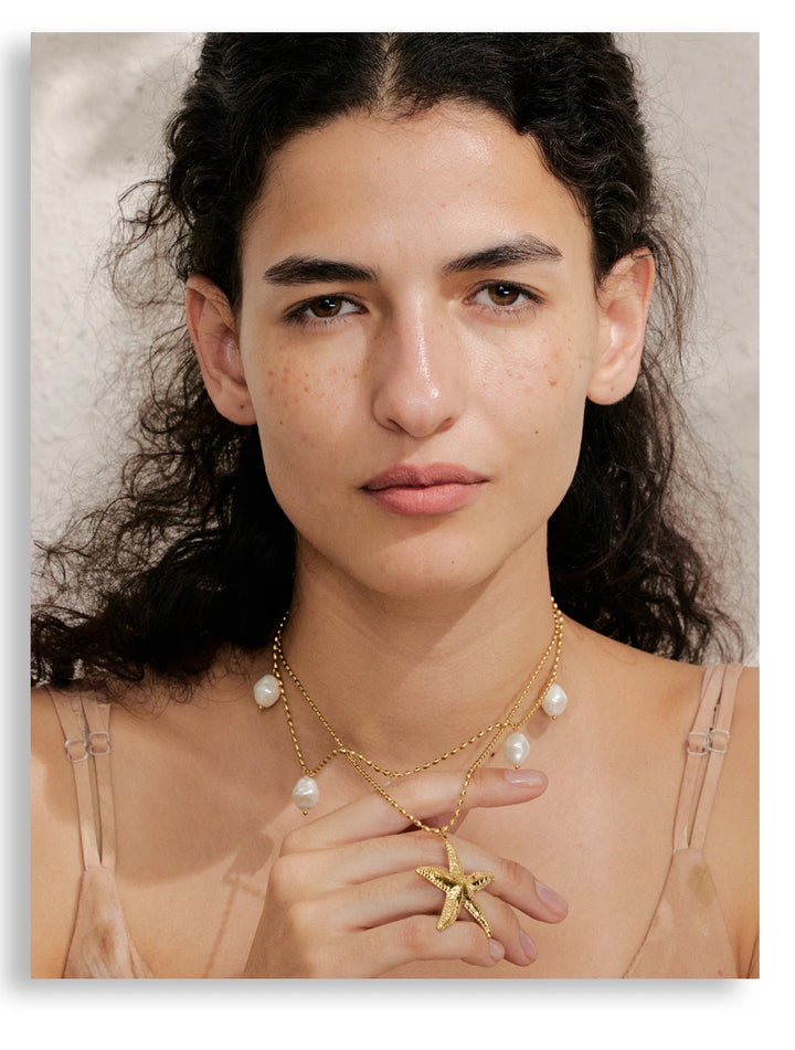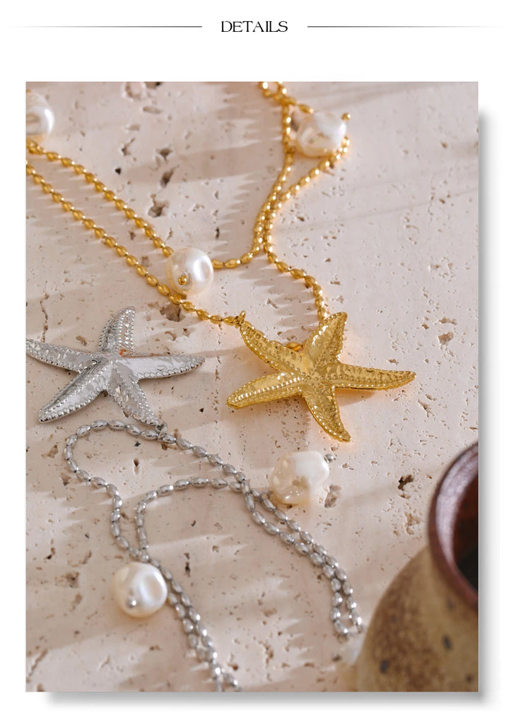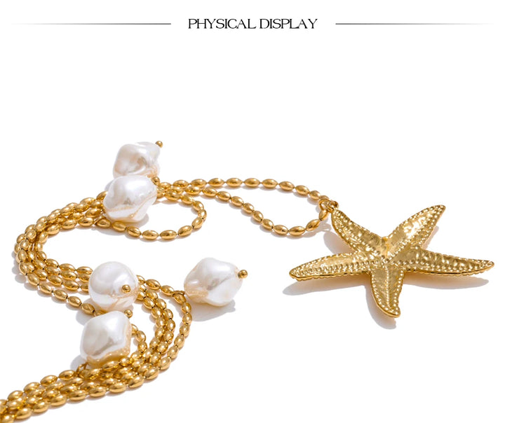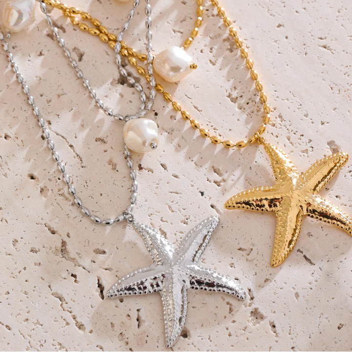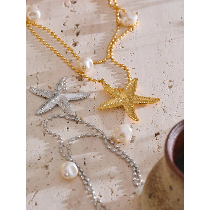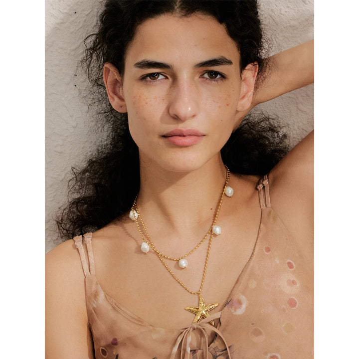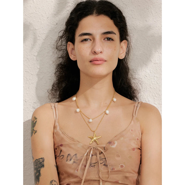 Yhpup Stainless Steel Double Layer Ocean Summer Holiday Necklace Jewelry Waterproof Handmade for Women Gold Platinum PVD Plated