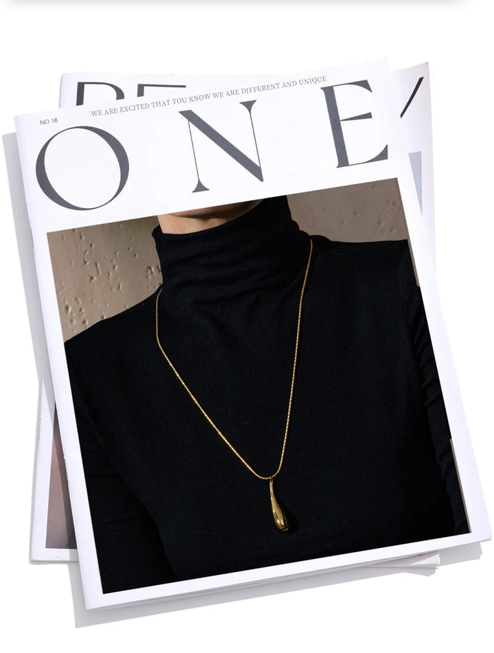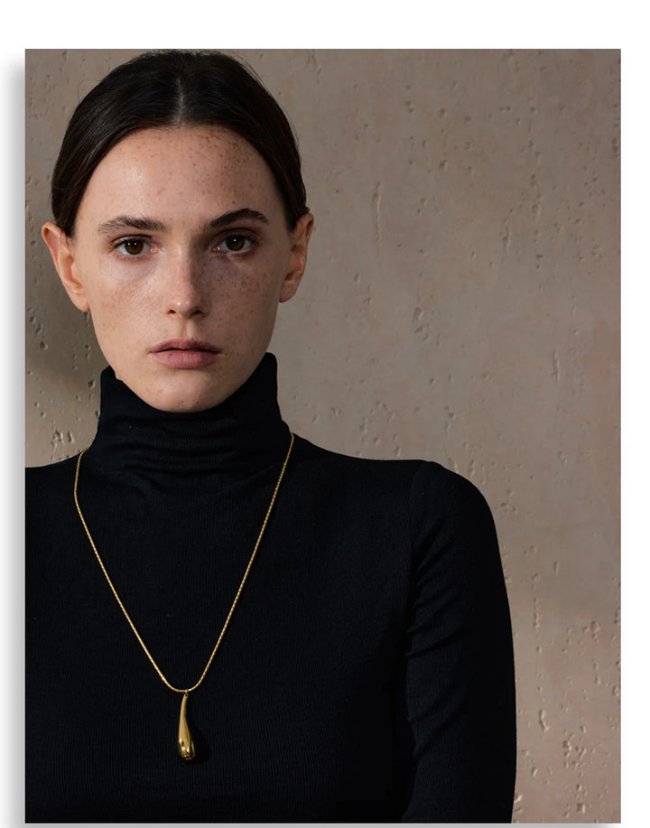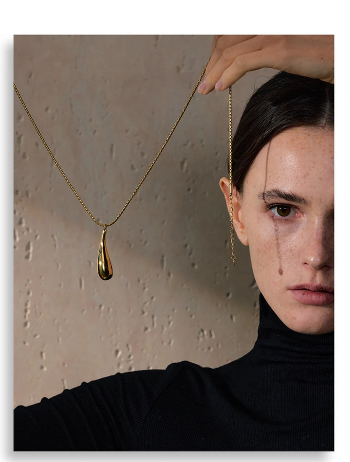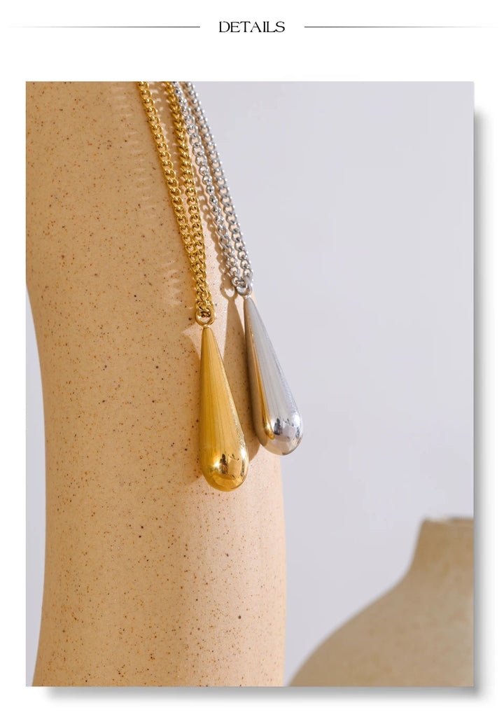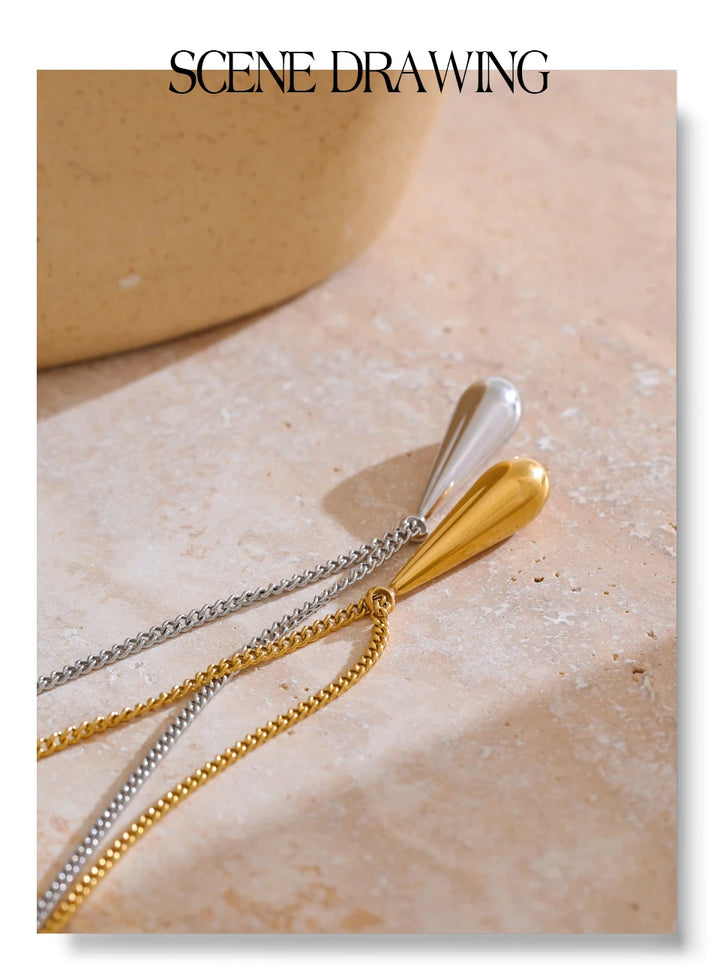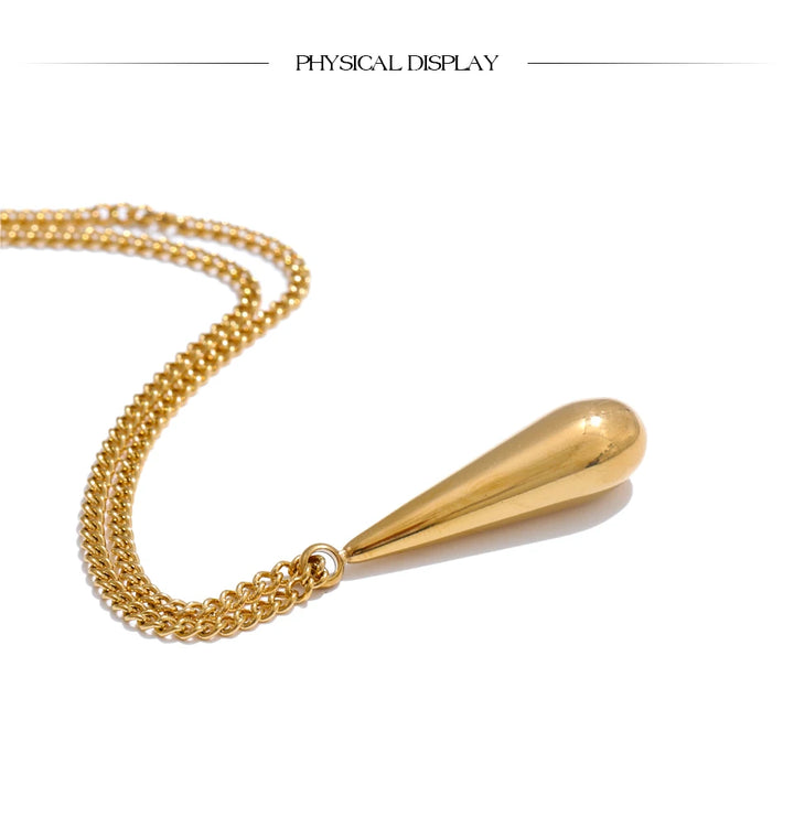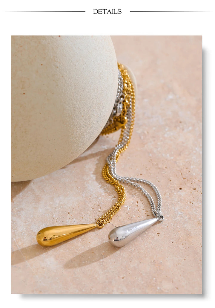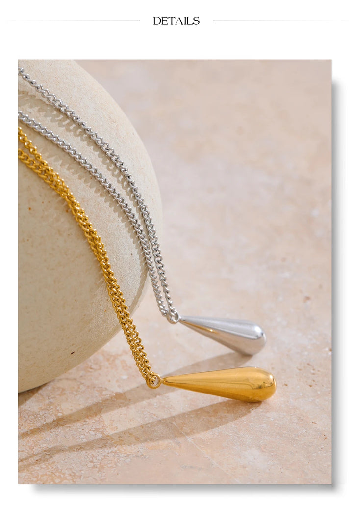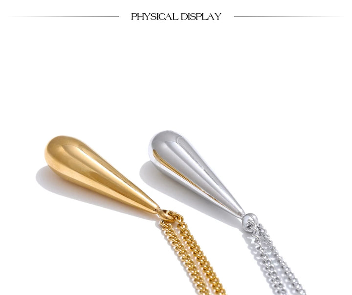 Yhpup Stainless Steel Metal Water Drop Pendant Necklace Minimalist Chic Collar Jewelry for Women Accessories
