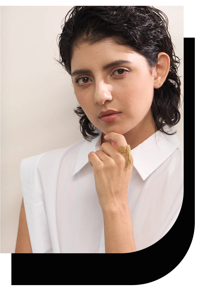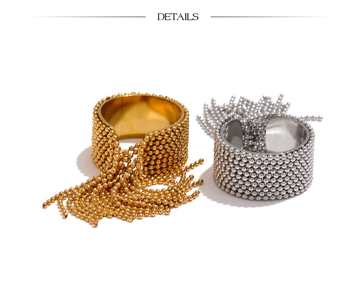 Yhpup Statement Stainless Steel Chain Tassel Finger Ring Adjustable 18K PVD Plated High Quality Charm Stylish Golden Jewelry