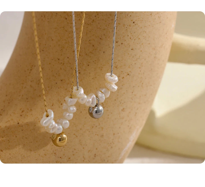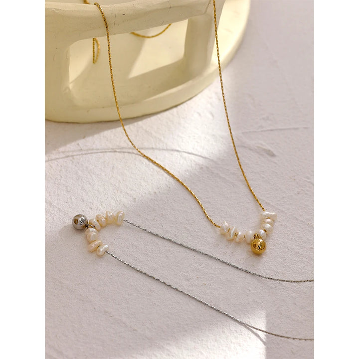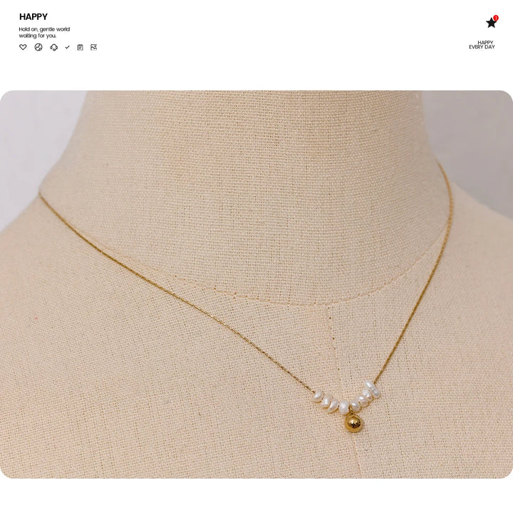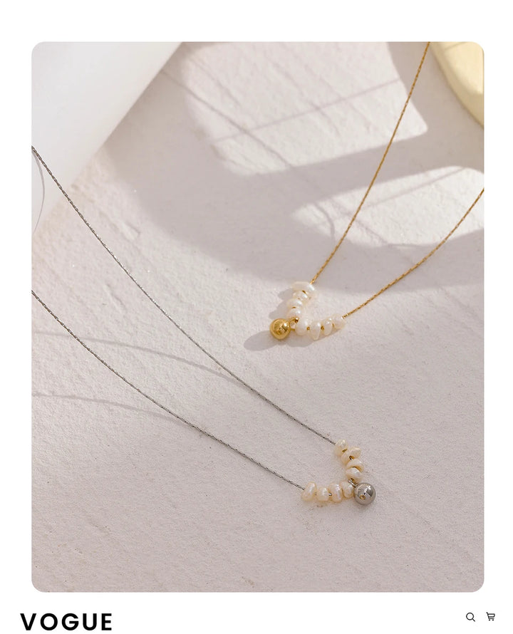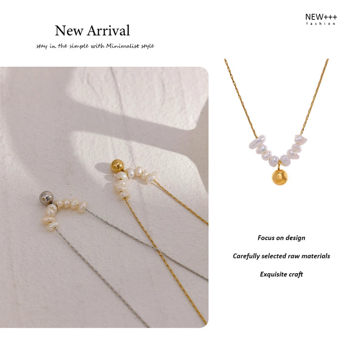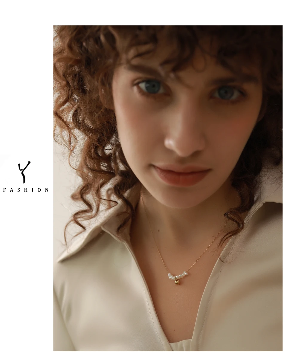 Yhpup Summer Natural Freshwater Pearls Delicate Korean Gentle Charm Necklace Stainless Steel Fashion Jewelry for Women