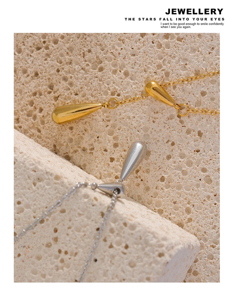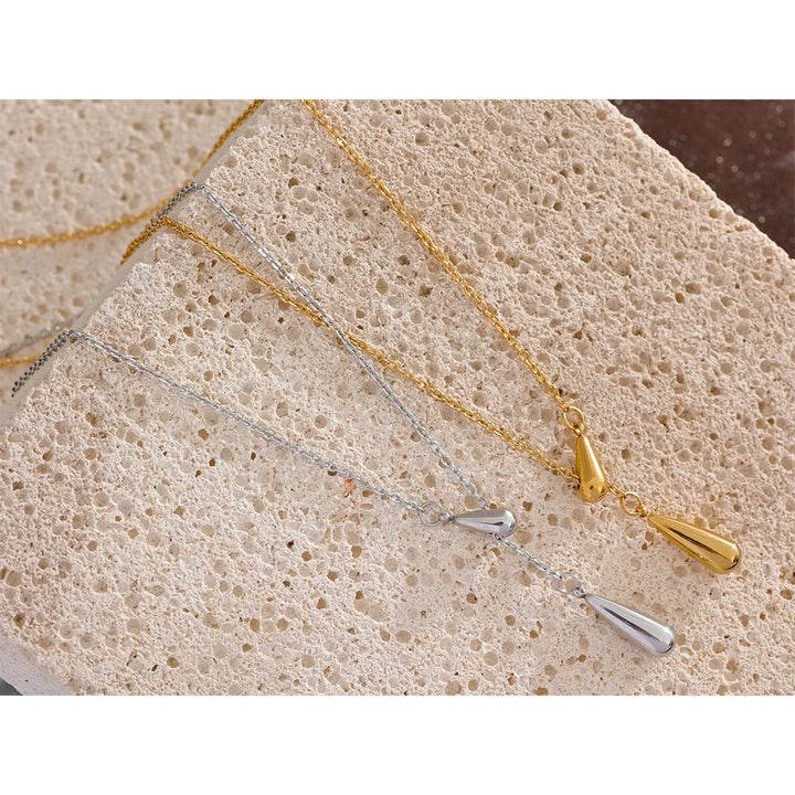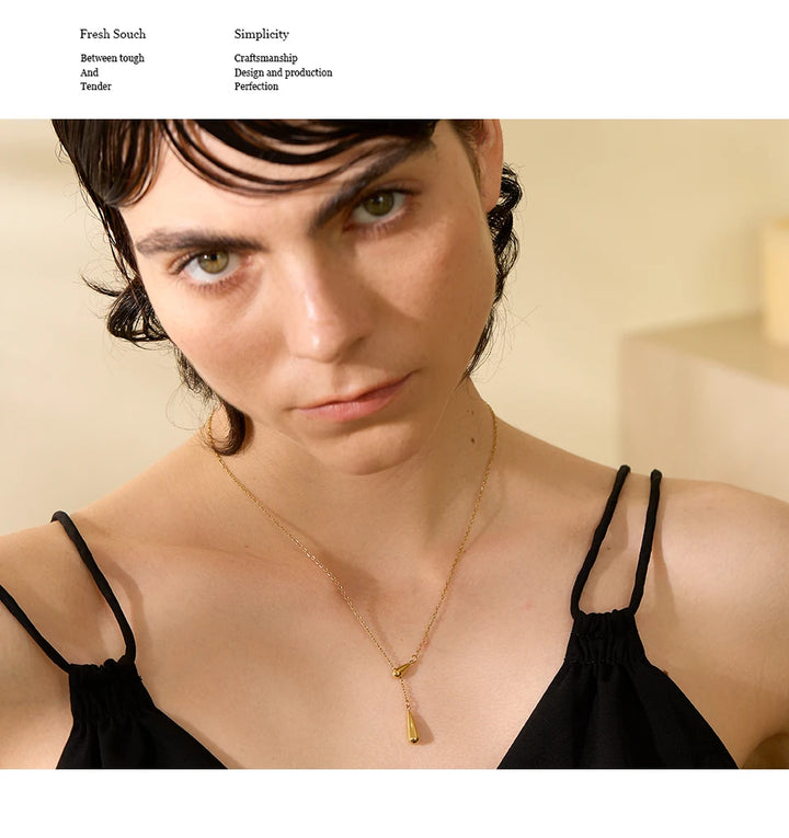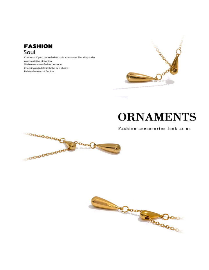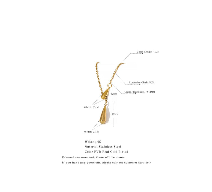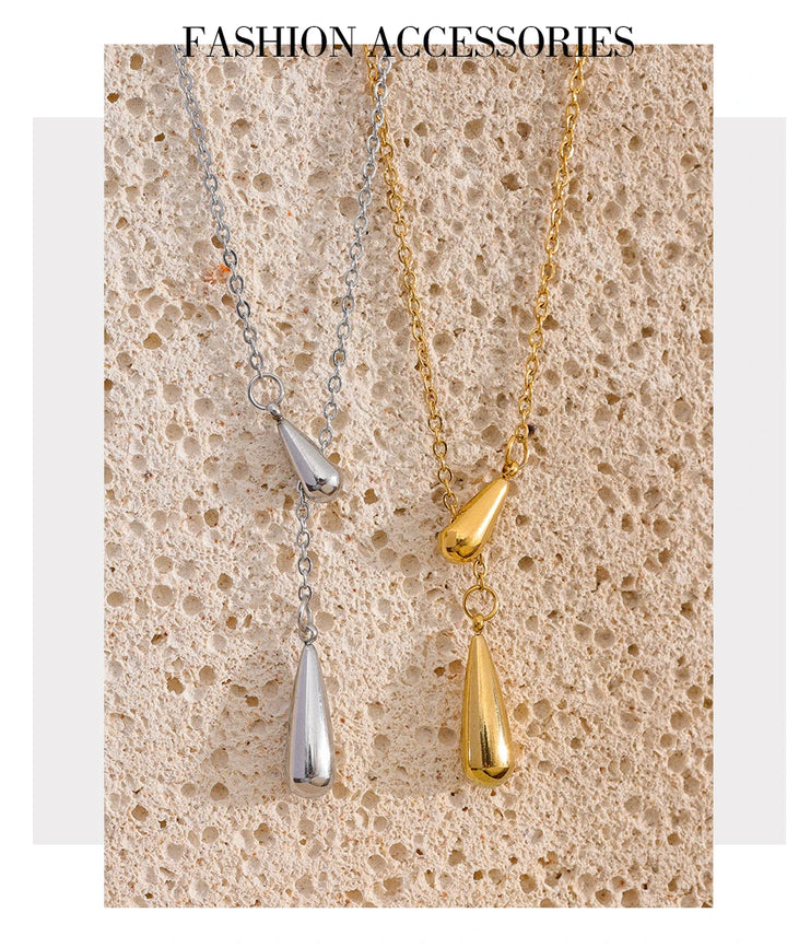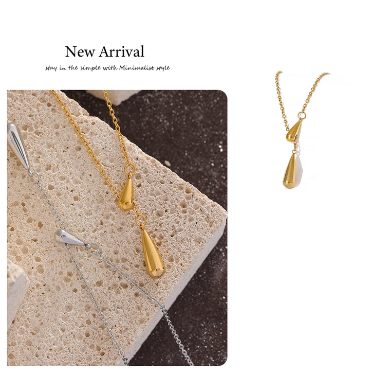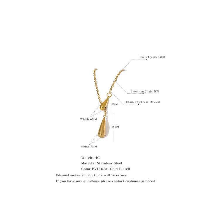 Yhpup Water Drop Fashion Cast Pendant Necklace Gold Color Trendy Stainless Steel Jewelry Collier Waterproof for Women Charm Gift