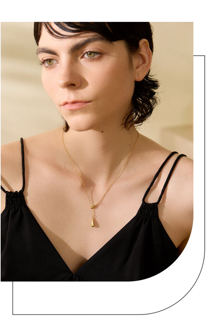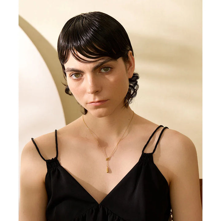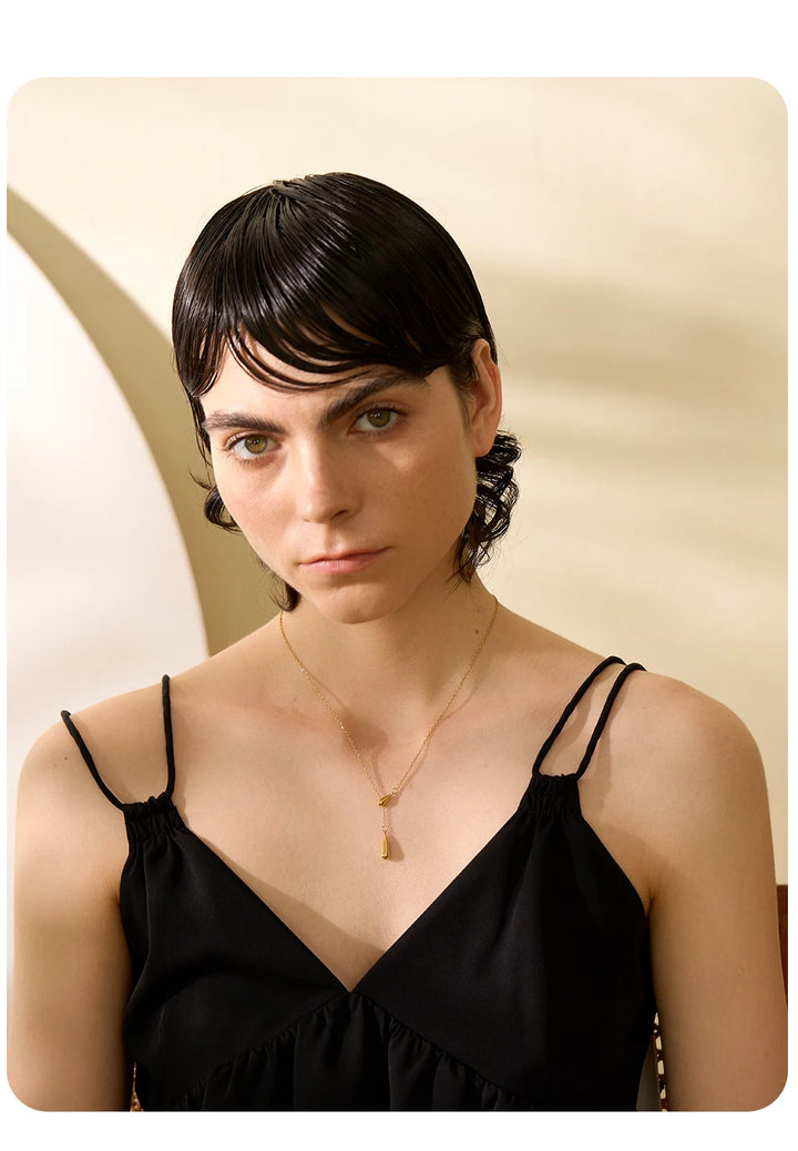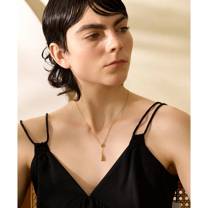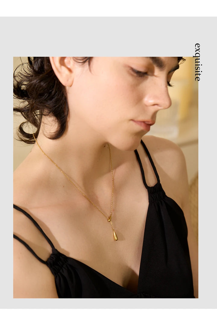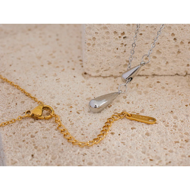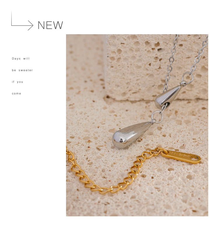 Yhpup Water Drop Fashion Cast Pendant Necklace Gold Color Trendy Stainless Steel Jewelry Collier Waterproof for Women Charm Gift